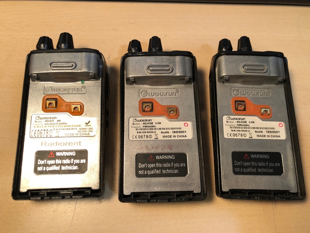 Eladó a képen látható 3 db Wouxun UHF kézirádió (400-470 MHz). Szuperheterodin rendszerű, nem SDR!