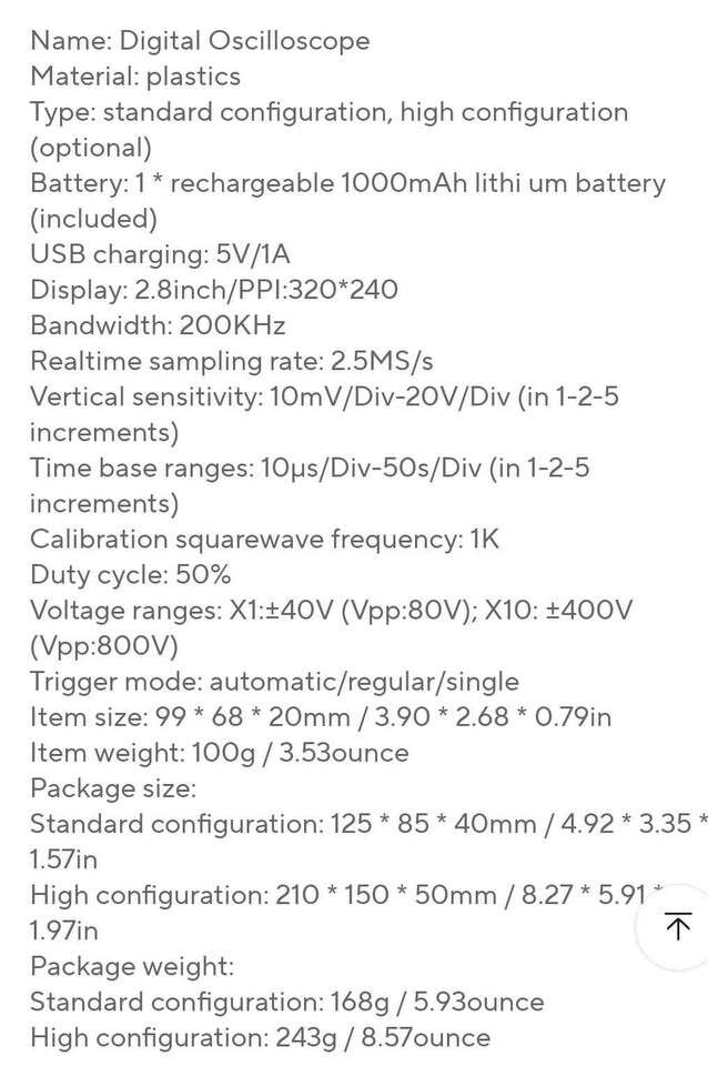 A kiírt ár CSAK az oszcilloszkópot , töltőkábelt , csuklópántot és a krokodilcsipeszes mérőfejet foglalja magába. (szkóp alatti rész)
