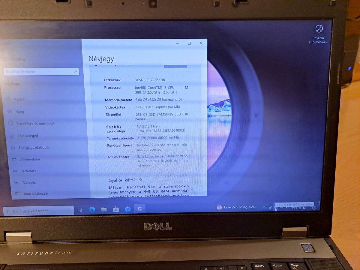 Eladóvá vált a képeken látható Dell Latitude E5510 laptopom, frissen telepített Windows 10 Pro rendszerrel, minden funkcióban működőképesen. Még 2018-ban vettem kollégistaként, az utóbbi 4-5 évben már csak tartalék volt, előtte napi használatú. Eladás előtt most tettem bele egy 256GB-os Samsung SSD-t, így abszolút használható általános célokra, böngészésre, irodai alkalmazásokra, gyorsan indul. Gyári töltő természetesen jár hozzá.