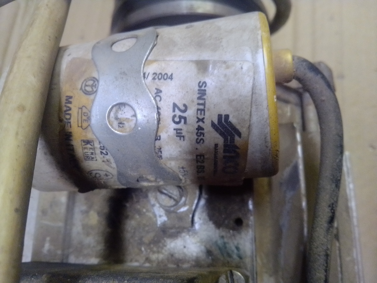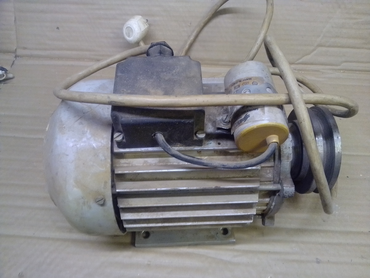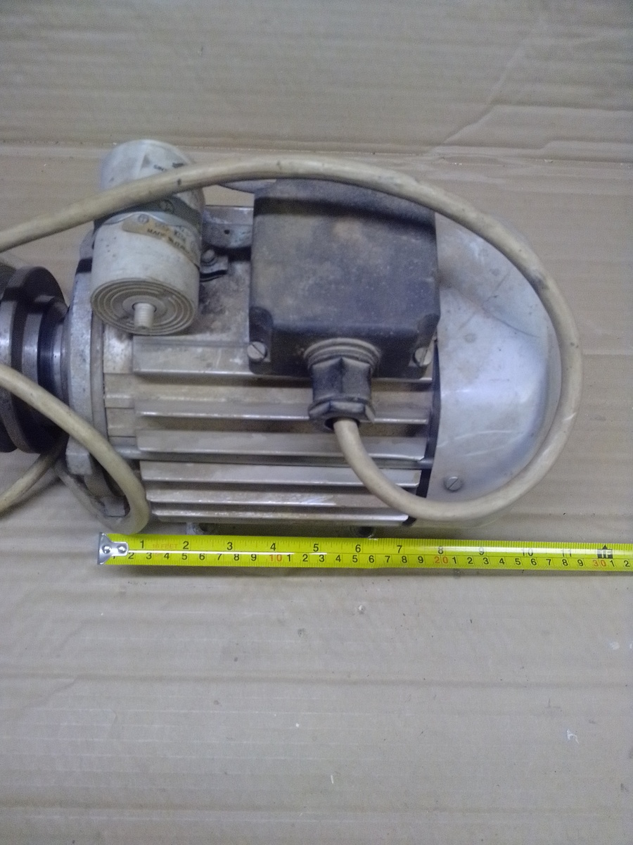 Adattábla sajnos nincs, viszont méretéből ítélve 500w környéke, hang alapján 2800-as fordulatú,aluházas, működik.