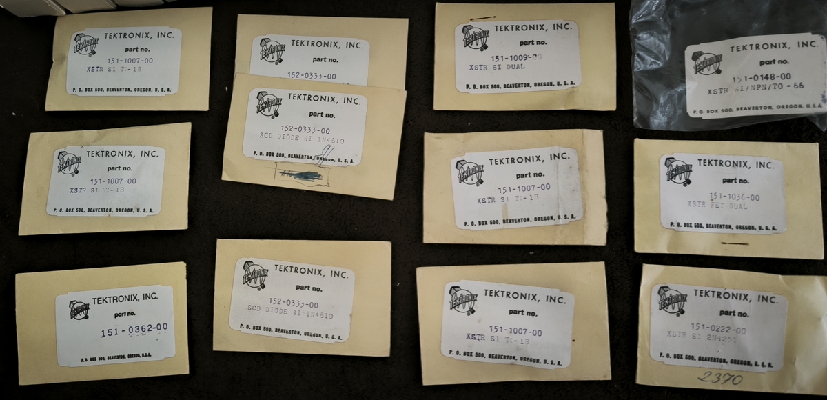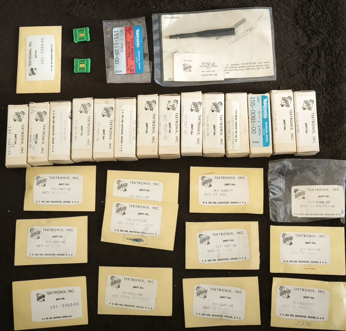 A képeken látható eredeti új Tektronix alkatrészek egyben.... 14db ic, dual fet, dual tranzisztor, tranzisztorok ..... stb. egyben.
