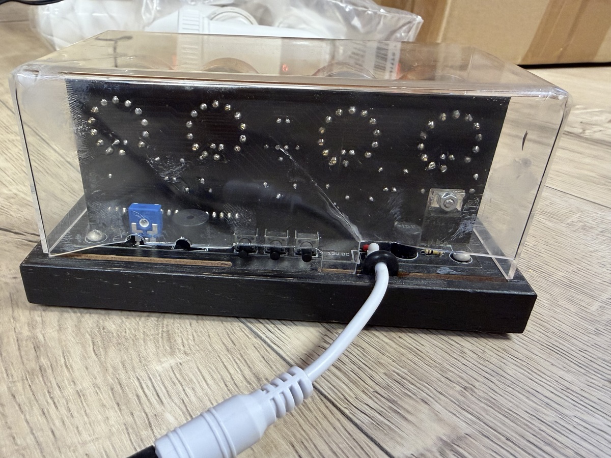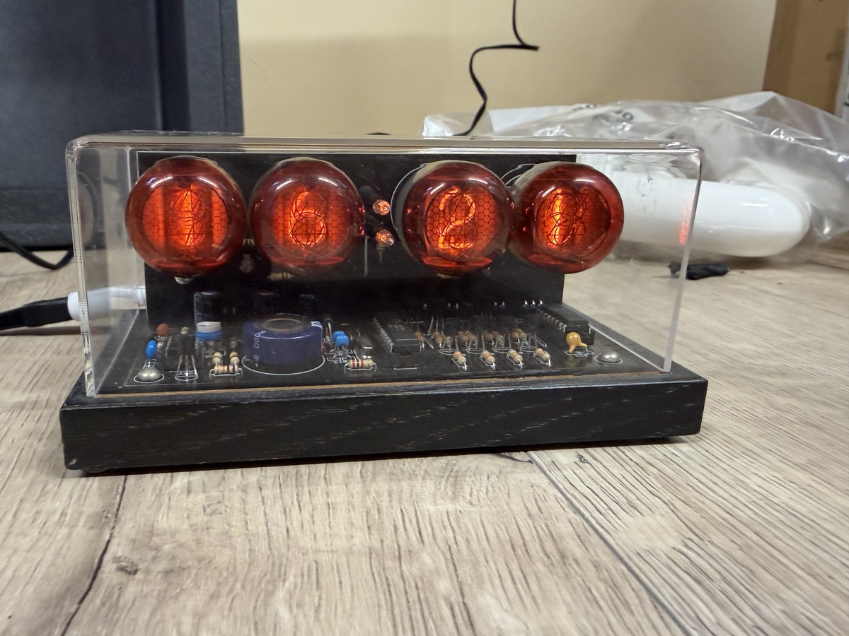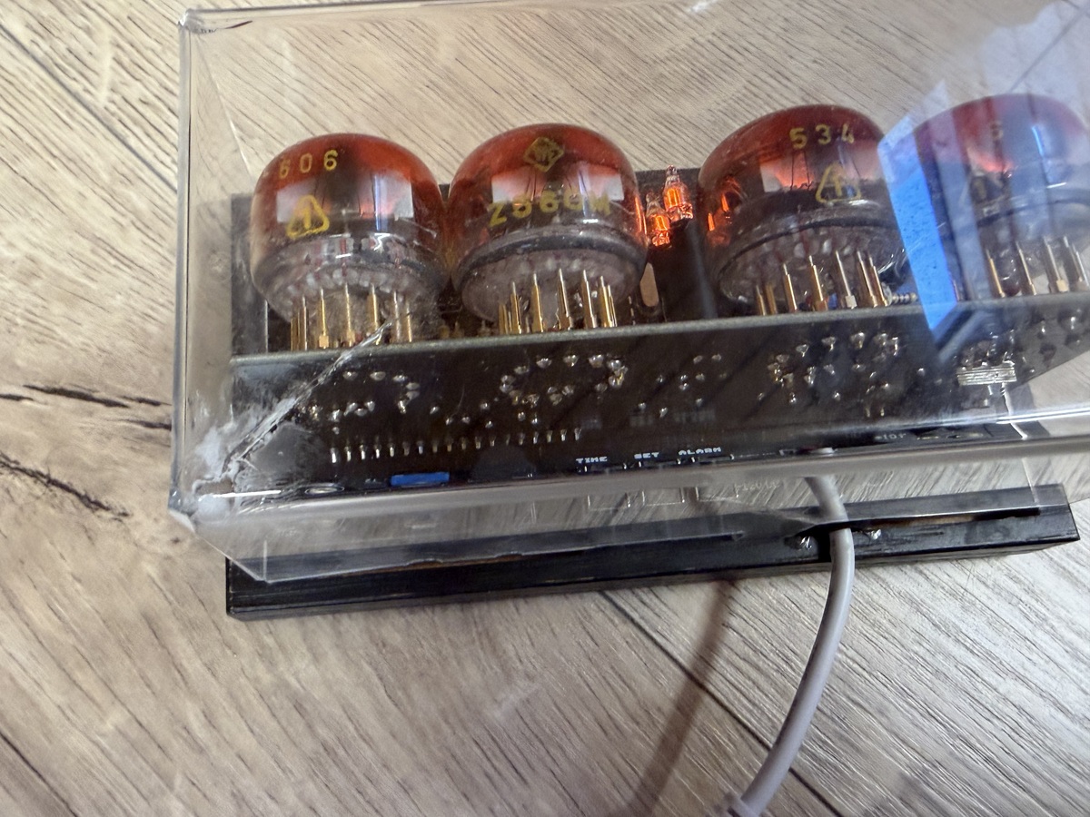 4db z560m el épített nixie óra. A csövek kiváló állapotban vannak eredeti lakkozással. Az akril ház sajnos hátul 2 helyen sérült de szemből ez nem látszik! 12v dugasz táp jár hozzá.