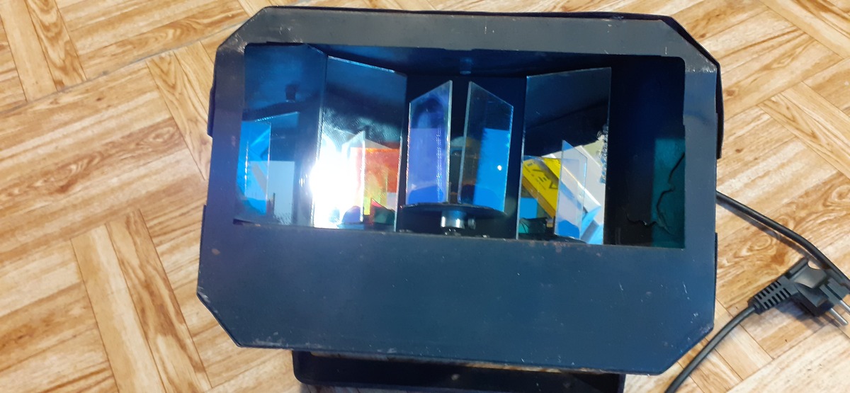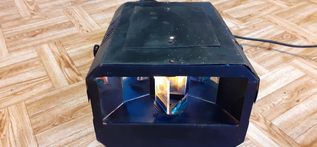 Eladó a képeken látható régebbi utángyártású fényefekt. Színes, forgótükrös, irányváltós, fényterelős, nagyfényű, optikai diszkólámpa.