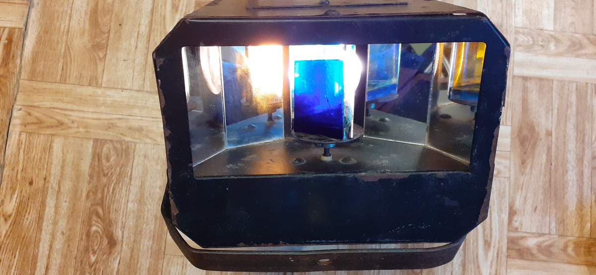 Optikai, forgótükrös, hangvezéret, irányváltós, nagyfényű, akár állványra is szerelhető lámpa.