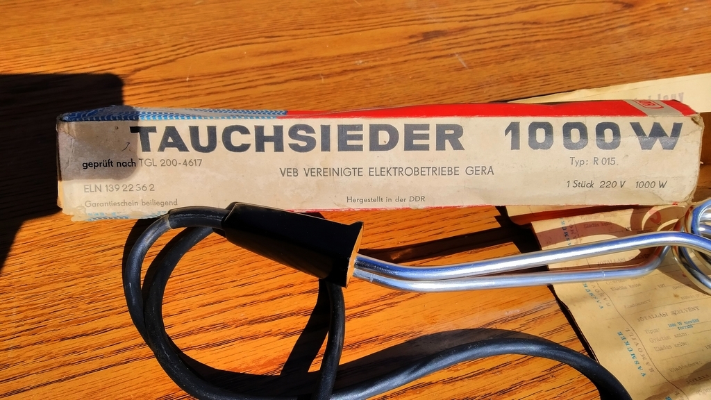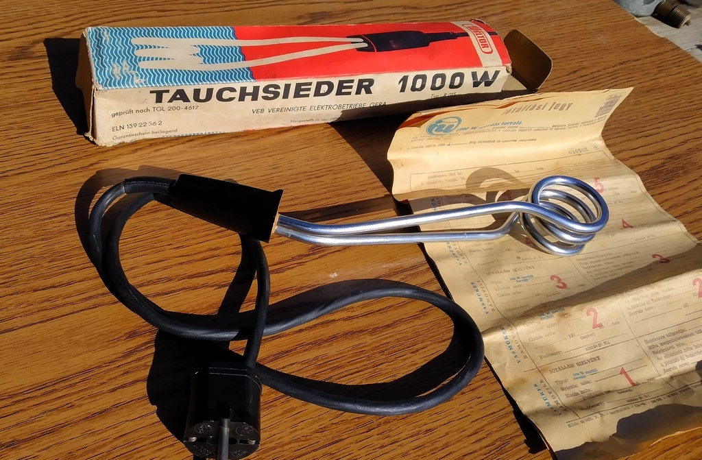 1000 W-os Kelet-Német (!) merülőforraló, eredeti dobozban.