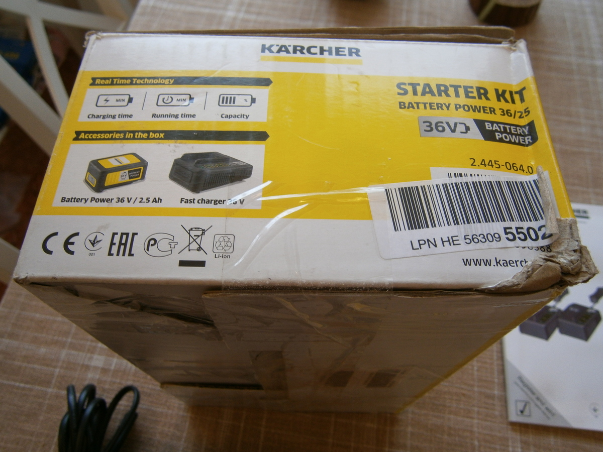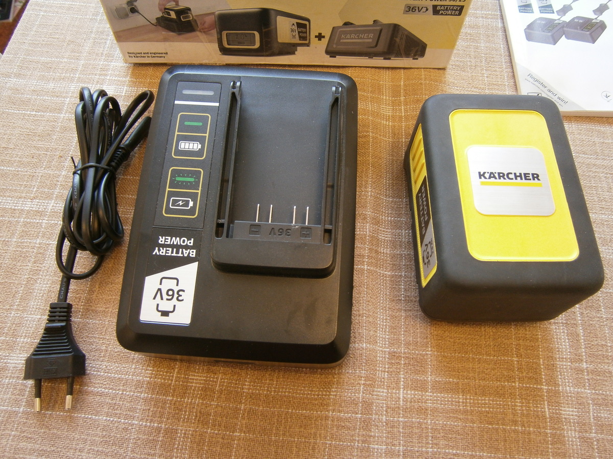 36 V gyorstöltő: A 36 V/2.5 A/H Kärcher battery power cserélhető akkumulátor 48 percen belül 80%-ra tölthető fel.