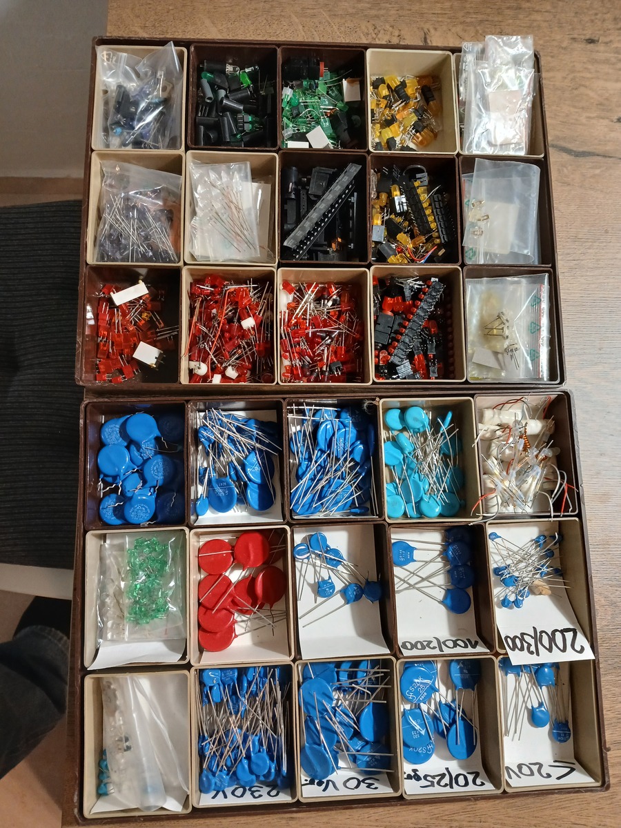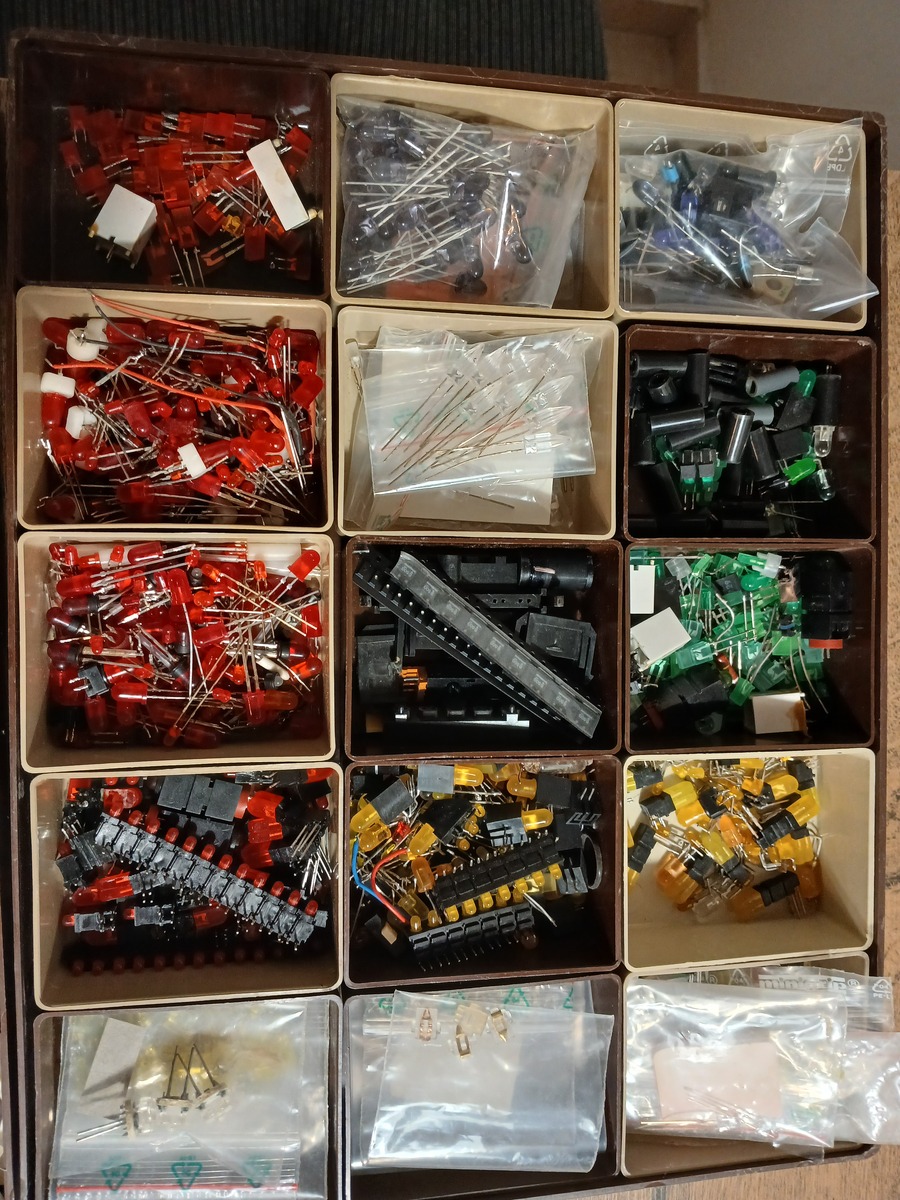 Alkatrésztartók, alkatrészekkel együtt, egyben
