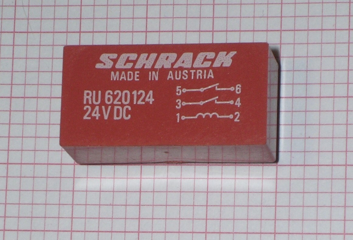 Tekercs: 12V DC, 800 ohm. Érintkezői 200V 0,5A kapcsolására képesek. Nyákba ültethető, méretei a raszteres lapról leolvashatók. Egy kis osztás 2mm.