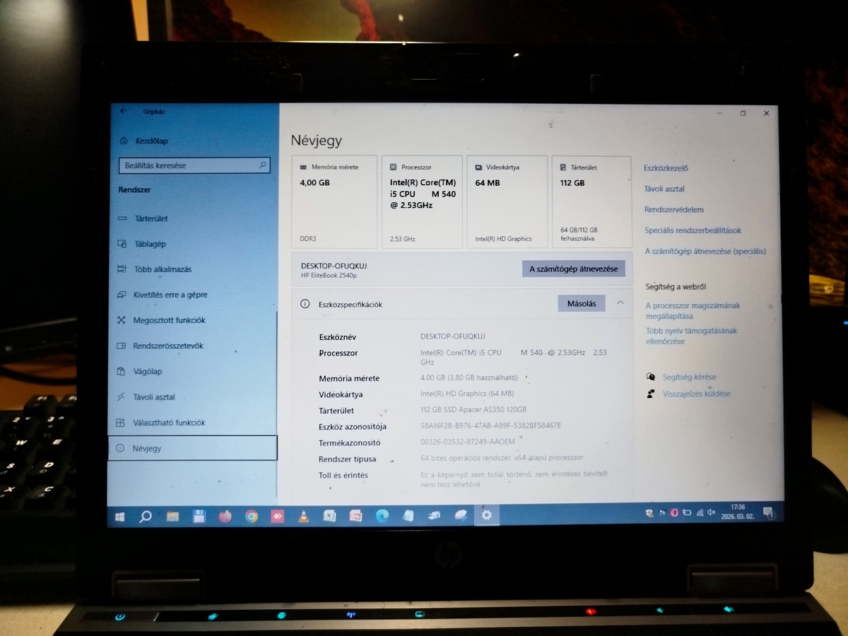 Eladó egy HP 2540p Elitebook.