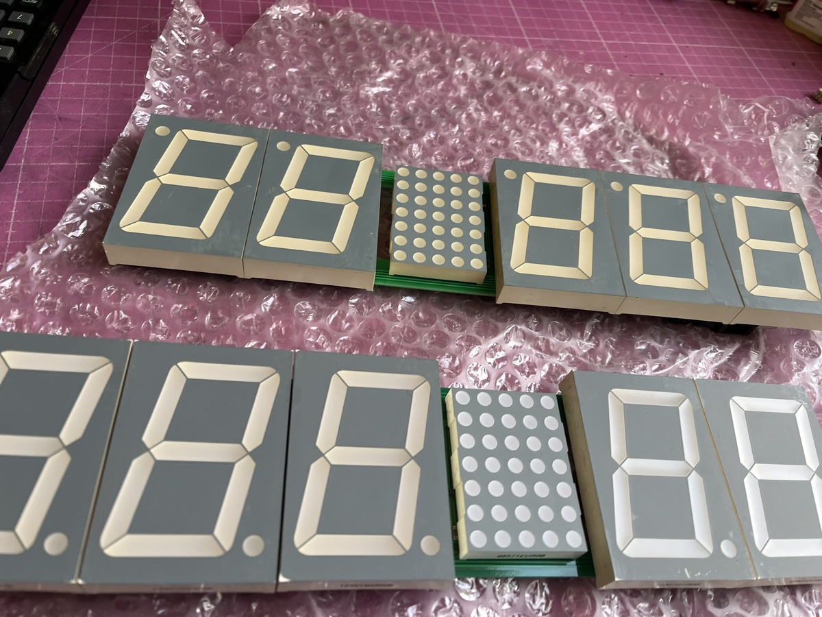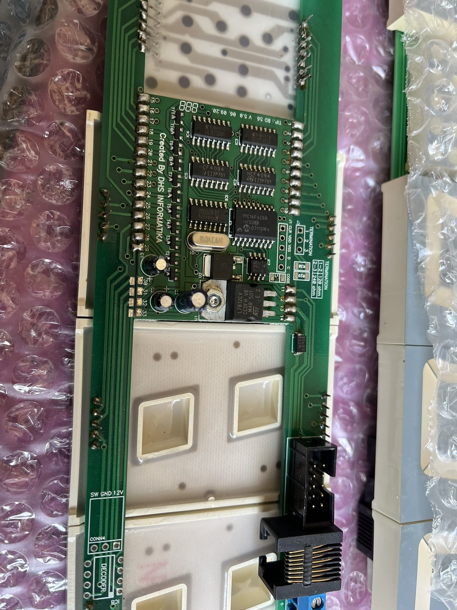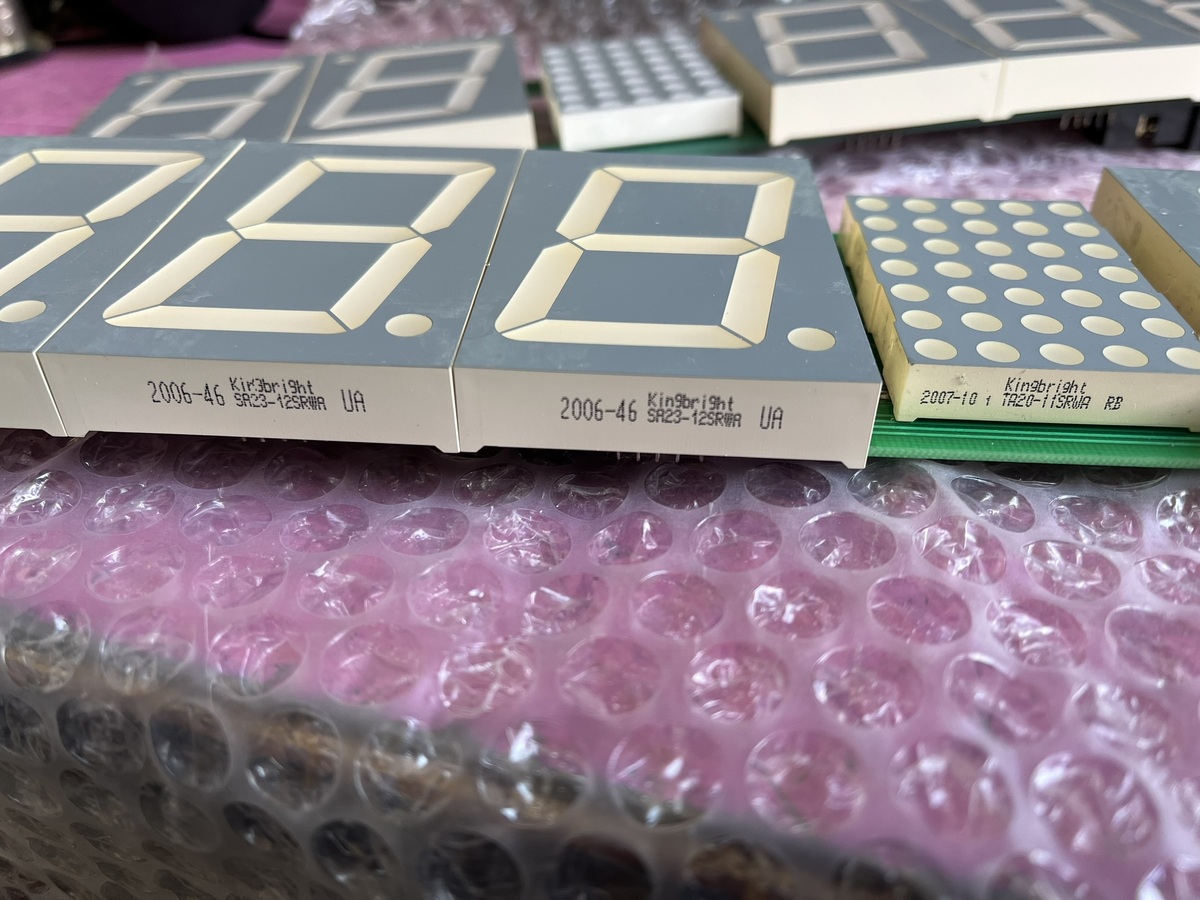 Kijelző panelek 5 db SA23-12GWA és 1 db TA20-11SRWA PIC16F628 vezérlő elektronikával.