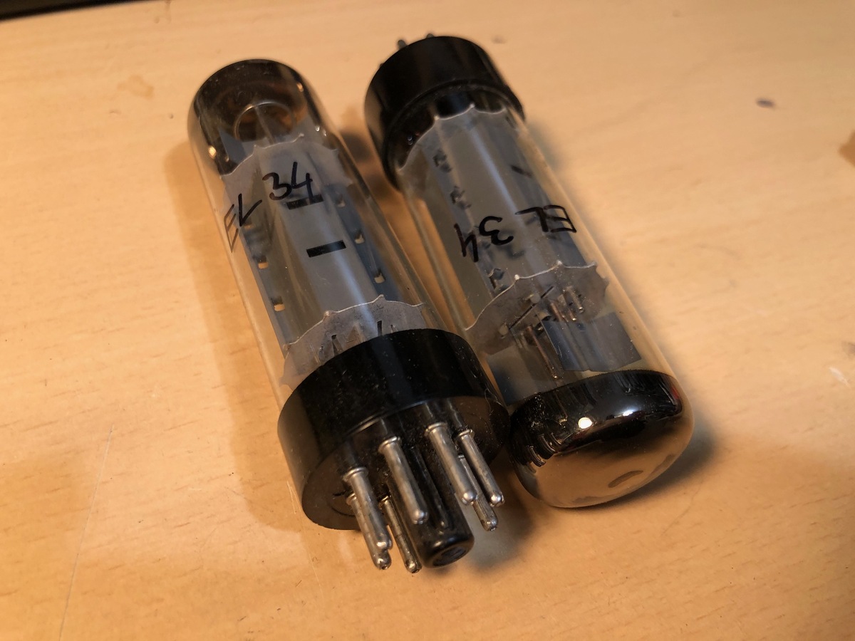 Eladó a képen látható 2 EL34 típ. elektroncső. Használt.