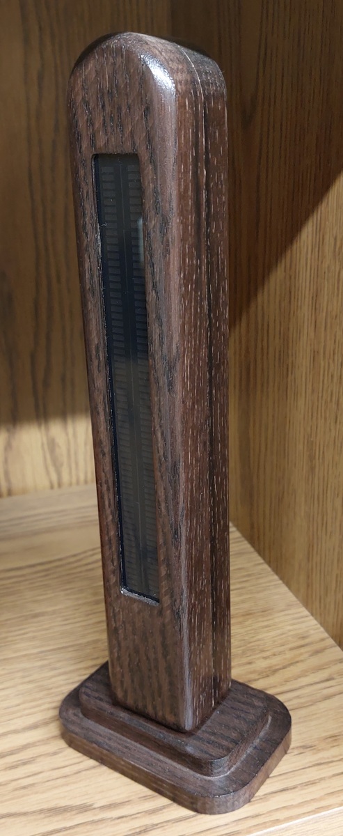 Egyedileg dobozolt kivezérlésjelző. (pácolva, lakkozva)