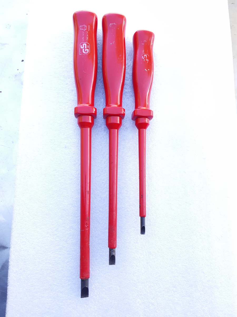 3 db újszerű VDE, 1000 V-os szigetelésű lapos csavarhúzó eladó!