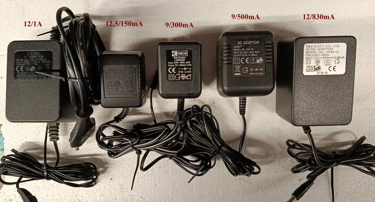 Analóg trafós dugasztápok a képen látható adatokkal az 5 db 2000Ft-ért átadó.