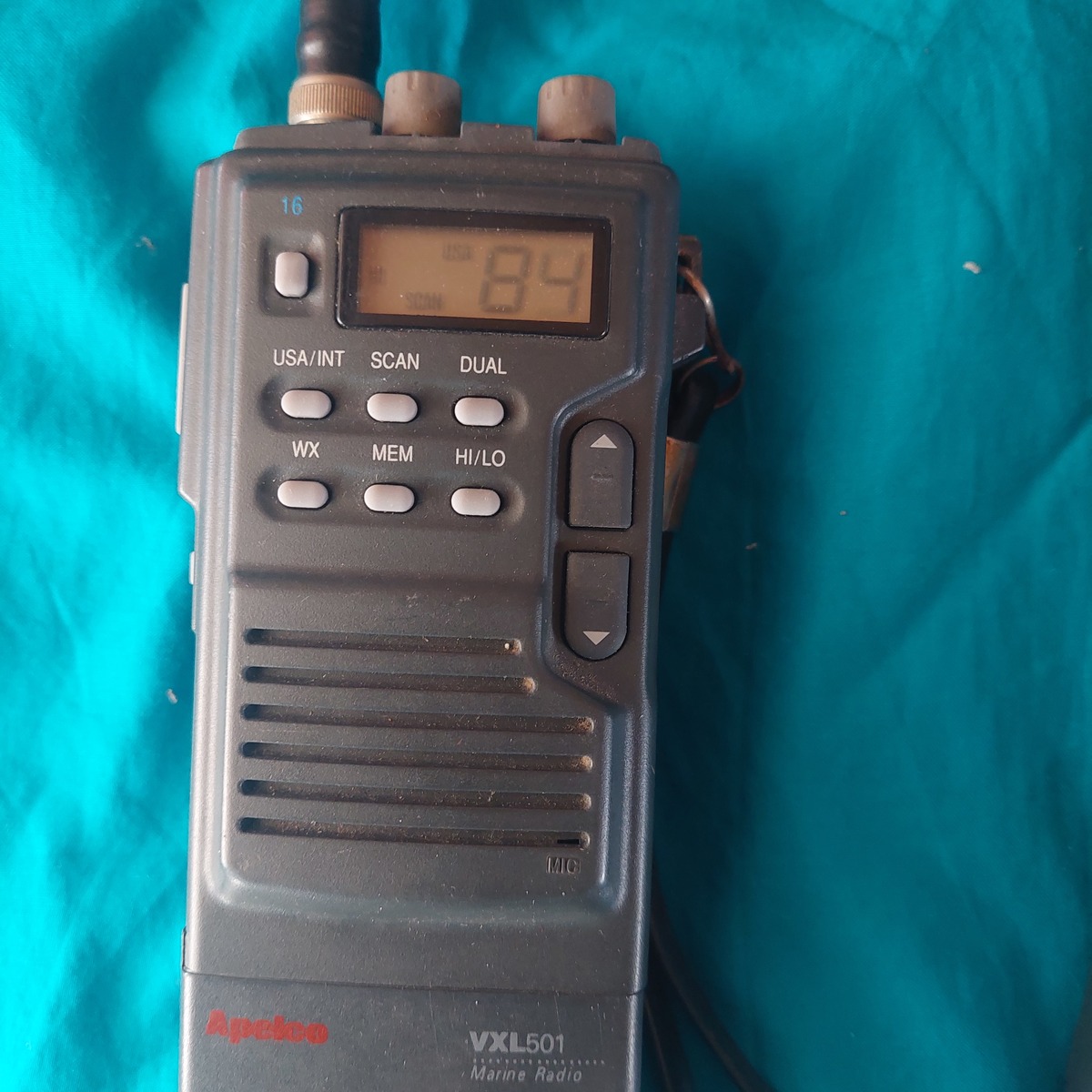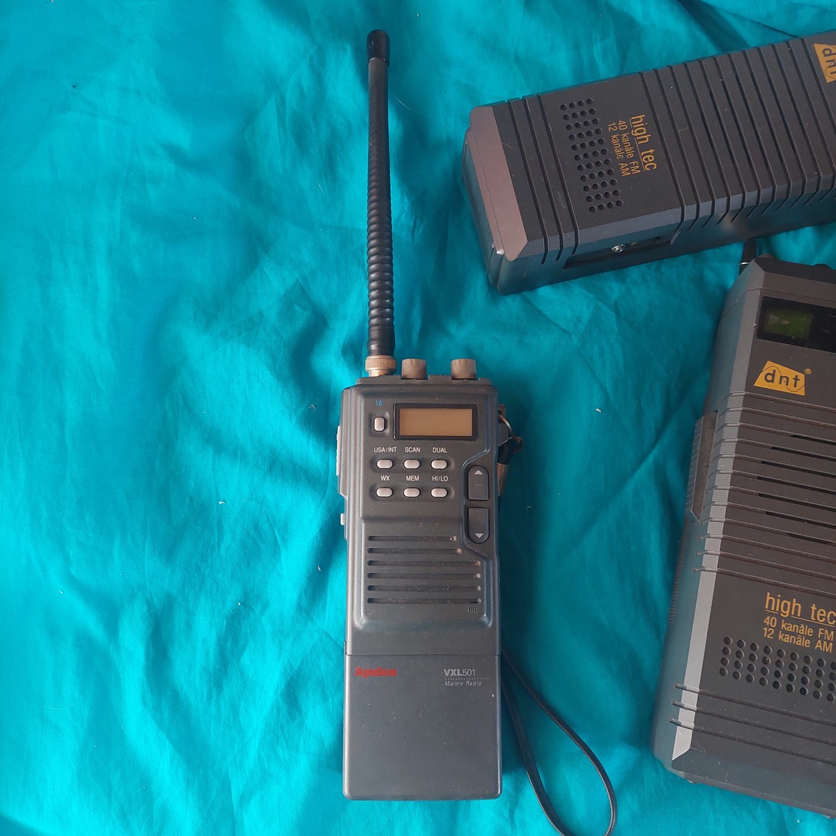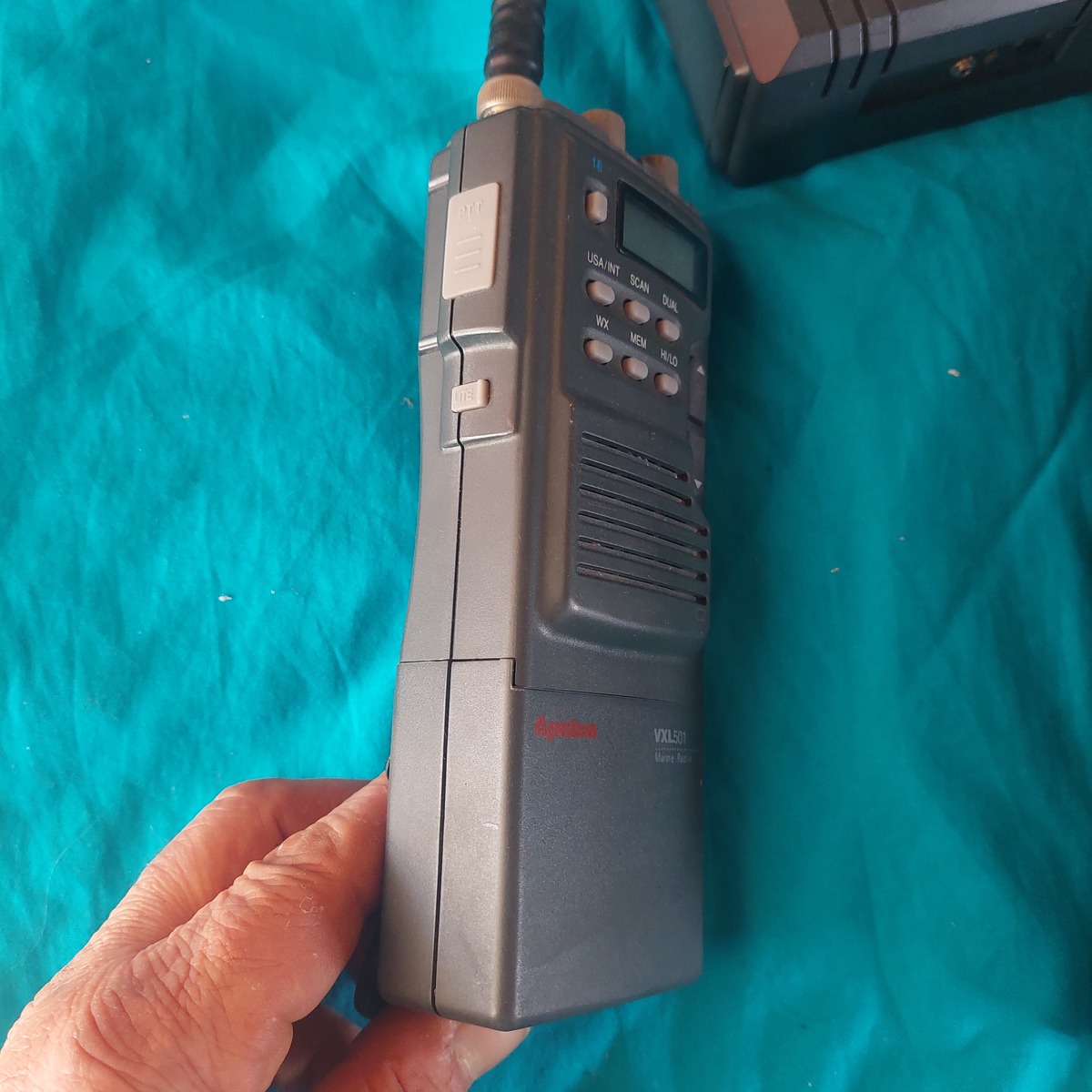 Ritka japán gyártású Apelco VXL-501 típusú hordozható tengeri (marine) adó-vevő rádió.Kiváló alap „diszkriminátor kimenet” beépítéséhez (AIS hajókövető vételére PC-hez). Az akku termeszetesen nem jo benne,felujítandó,tápegységről élesztve bekapcsol,gombokra reagál,és talán mondható hogy szép megkímélt a külső.