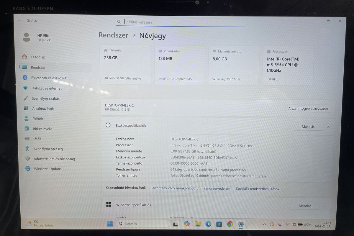 2x FHD Webkamera, Wifi, Bluetooth, 4G, SIM foglalat, Ujjlenyomatolvasó