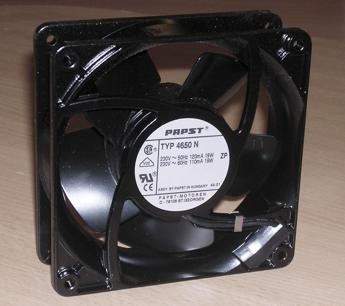 5 lapátos,120×120 mm méretű, teljesen fémből készült, 230 V 19 W-os Papst ventilátor, ahogy a képeken látható. Új.
