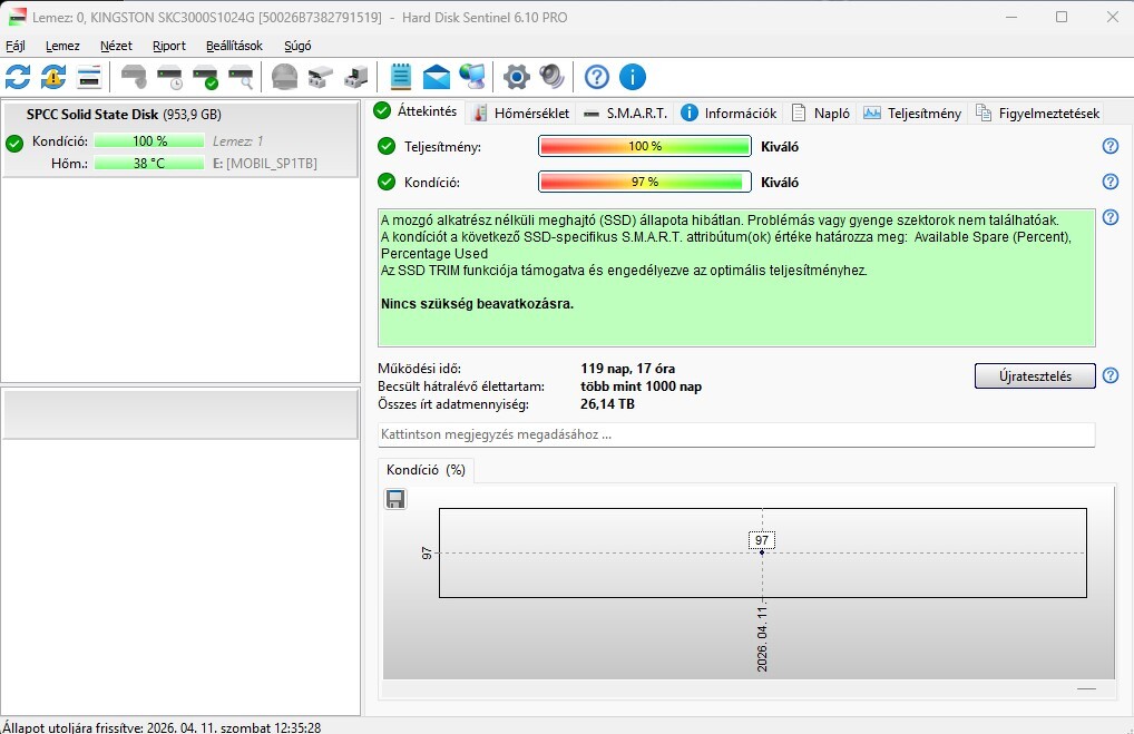 Keveset használt jó állapotban látható a HD Sentinel képen.