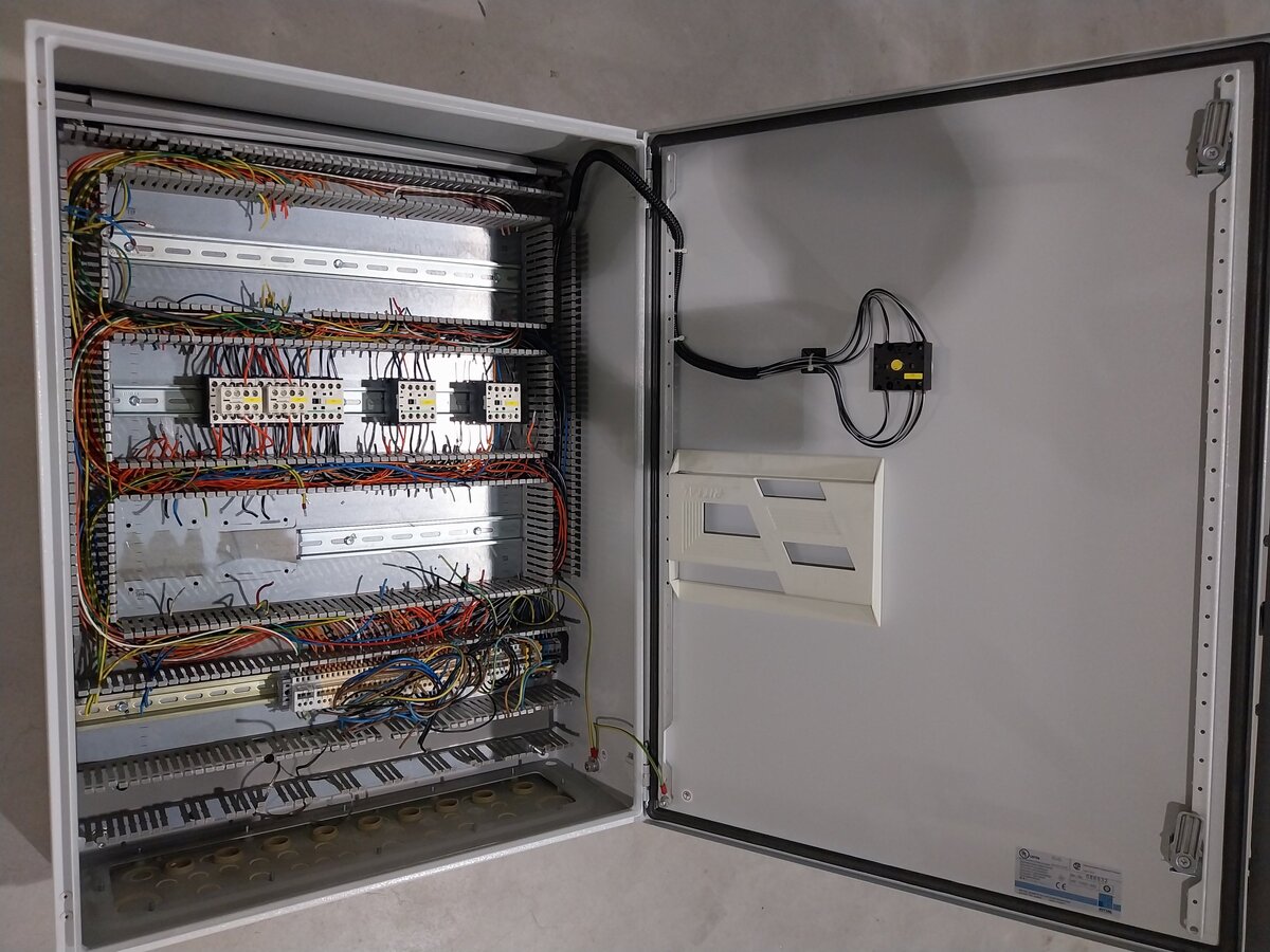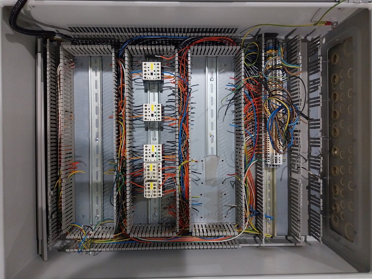 Ahogy a képen látható, sorkapocsblokkal és néhány mágneskapcsolóval.