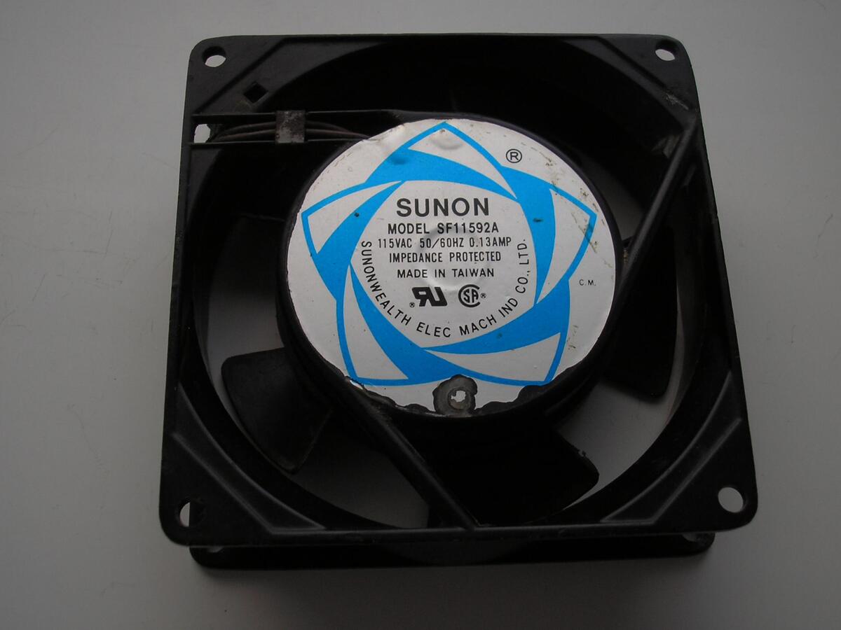 Sunon , 115 V AC ventillátor , 90 x 90 x 25 mm , fémházas , használt .