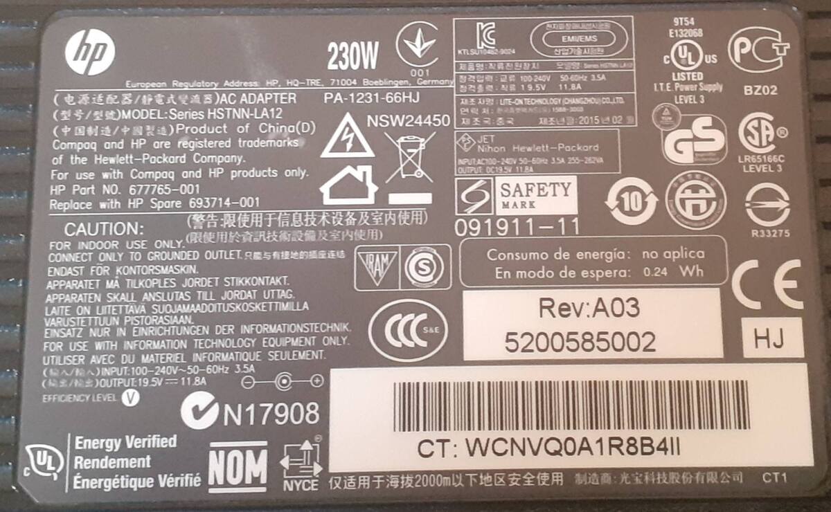 19.5 vDC, 11.8 A.