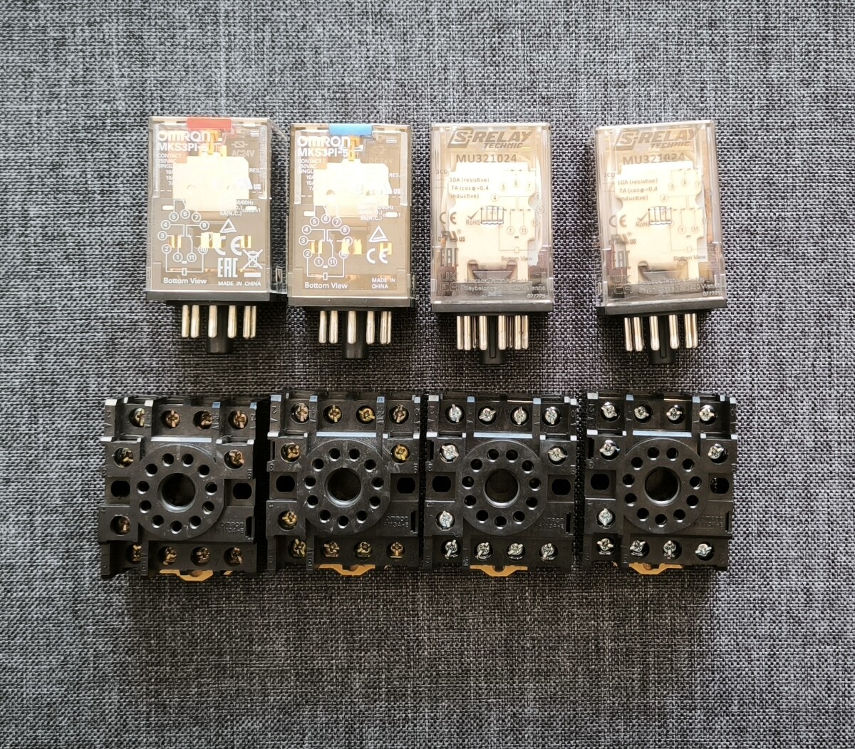 A relékből 3db. 24VDC tekercses, és egy 24VAC.