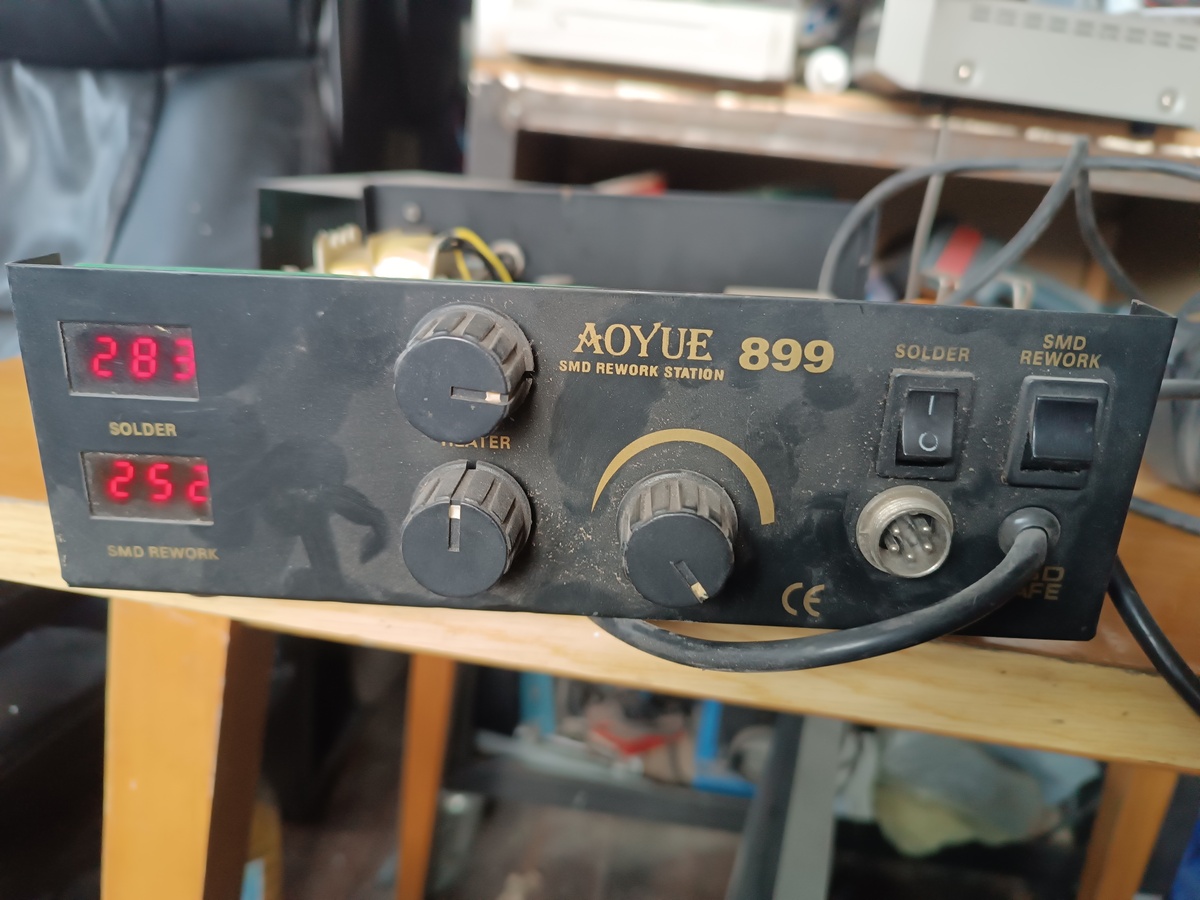 Aoyue 899 forrasztó állomás a képek szerinti állapotban alkatrésznek eladó. A páka működik, a hőlégfúvó romokban, egyébként poros, műhely lelet. (máshol is hirdetve...)