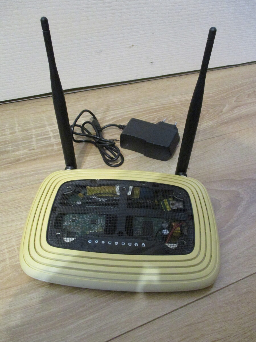 TP-Link 841v7 N-es Wi-Fi router USB moddal eladó. A SoC-ban levő USB busz ki lett vezetve csatlakozóra, és olyan firmware lett feltöltve (TL-MR3240-é) ami működik vele. (A csatlakozó belül van, de ki lehet hozni a házon kívülre is.) Én csak arra használtam, hogy SD kártyáról tudjam overlayfs-el futtatni a routert (de ment winyóról is :D ), de némi telepítés után használható filemegfosztásra, nyomtatószervernek, stb. Az USB-nek egy 500mA-es tápot is beépítettem. A teteje hálóra lett cserélve, hogy jobb hűtése legyen, a SoC-on hűtőborda van.