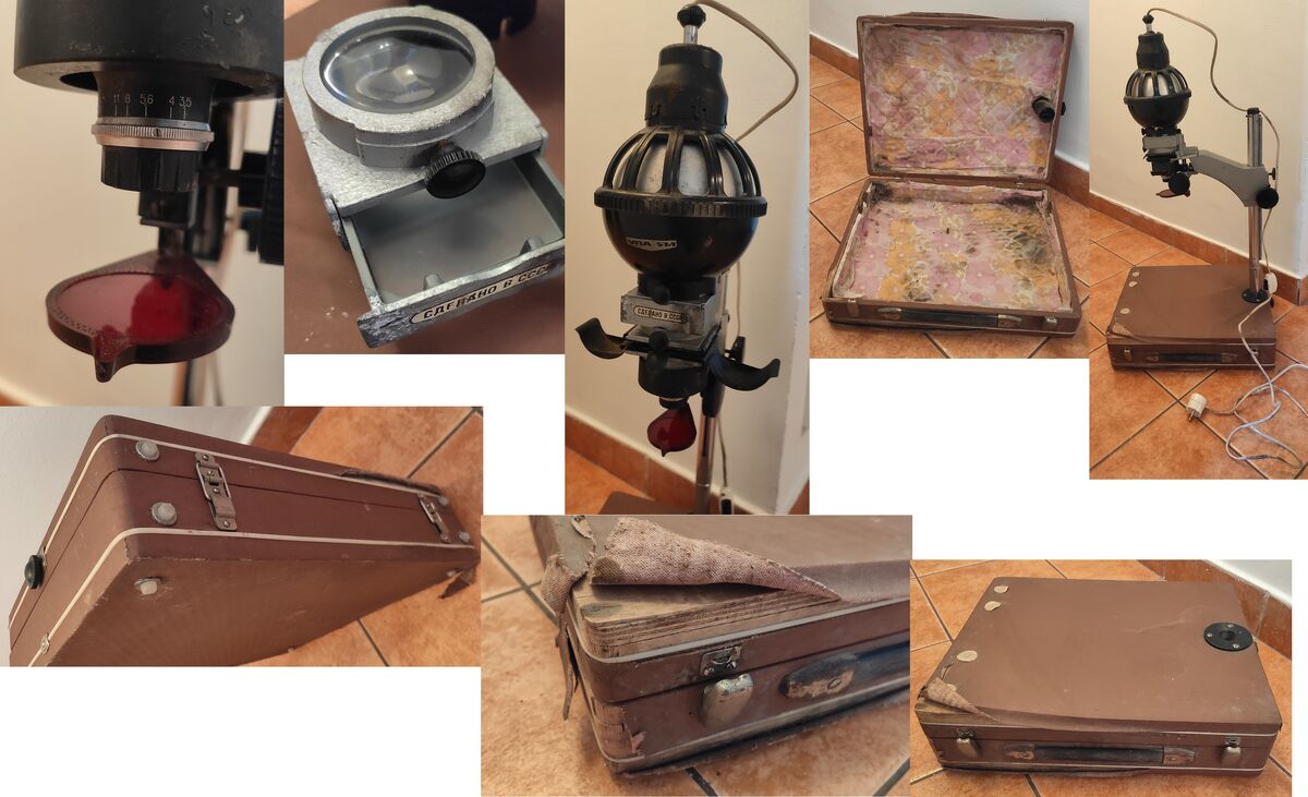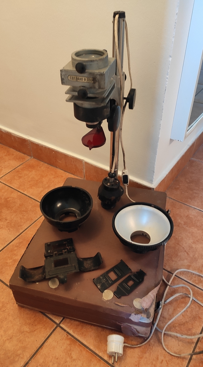 A fény-gömb és a nagyító lencsék épek, az állvány is ép. A króm néhol feljött.