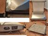 Az íves egységen a vászon ép, anyaga a kornak megfelelő állapotú. A tükrös lemezek épek, de koszosak.