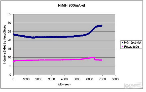 Ez pedig egy NiMH akksi, 2000mAh-s, ugyanúgy 900mA-el töltve.