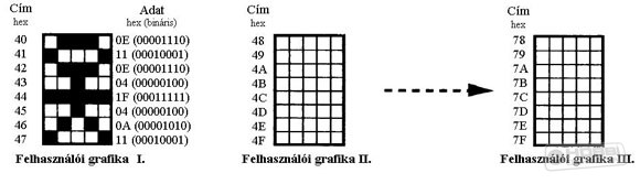 01000000-tól 01111111-ig ($40-$7F) terjedő parancsokkal a felhasználói grafikákat lehet beállítani. Ezt a legegyszerűbben úgy tanulhatod meg, ha a kijelzőn egyből látod, amit csinálsz. Ez a következőképp fog kinézni: A szokászos beállító, kijelző bekapcsoló, kurzor beállító parancsok beírása után küldj el még egy kijelző törlés parancsot is (Ha esetleg már volt valami a kijelzőn, vagy a $00-ás pozició nem a bal felső volt, akkor ez a parancs korrigálja ezeket a hibákat.) Most nézd meg, hogy a felhasználói grafikák heléyn mi van. Írd be, hogy a 00000000-00000007 kódú ($00-$07) karaktereket nézd meg. Valószínűleg csíkokat fogsz látni, vagy valami összevisszaságot, vagy ki tudja mit .Most állítsd be a CGRAM címét $00-ra. Ezt a 01000000 ($40) paranccsal teheted meg. A kurzor a kijelző második sorára fog ugrani, de ezt most nyugodtan figyelmen kívül hagyhatod. ![]() Mostantól a beírt adatok a CGRAM-ba íródnak. Írd be a következő adatsort: 00001110, 00010001, 00001110, 00000100, 00011111, 00000100, 00001010, 00010001 ($0E,$11,$0E,$04,$1F,$04,$0A,$11). Az RS vonal közben karakterbeviteli módban legyen (logikai 1). Egy pálcikaember fog megjelenni, aminek a lábai lelügnak az aláhúzás sorába. A következő 8 byte beírásával a CGRAM második karakterét állíthatod be, és így tovább. A kódok és a pixelek közötti összefüggést a kettes ábrán láthatod. Összesen 8 karaktert írhatsz be, amik aztán bekerülnek a karakterkészletbe, és ugyanúgy hívhatók első mint a többi karakter. Ezután a 00000000-00000007 ($00-$07) címen lehet elérni őket. (Az ezután következő 8 címen újra ezeket a karaktereket találhatod meg.) Látható hogy egy mező 8 pixel magas, de a karakterek általában csak a felső 7-et használják, mivel az alsőban jelenik meg az aláhúzás. Mivel a karakterek csupán 5 pixel szélesek, ezért a beállított adatnak csak a 0-4ig tartó bitje az érdekesek (Magyarul a bal oldalon lévő 3 bit akármi lehet) A CGRAM memóriája a táp megszűntével elveszik. Szóval például egy mikroprocesszoros használat esetén a processzor egyből betöltheti ezeket a karaktereket az EPROM-jából. 4 bites adatátvitel A HD44780-as chip, ami a legtöbb LCD-ben megtalálható, úgy lett megtervezve, hogy kompatibilis legyen a 4 bites mikroprocesszorokkal. Ez a mód azonban mikrokontrolleres használat esetén is nagyon hasznos tud lenni. A mikrokontrollerek I/O lábaiból sosem elég . Mindig van valami, sok a kapcsoló, vagy a kimenet. Persze mindig van nagyobb is, de célunk a miniatürizáció, és persze az ár sem elhanyagolható.Miután a kijelzőt 4 bites módba tettük a Funkciók paranccsal, minden kódot két fél-kódként (nibble) kell elküldeni. A nibble nevet néhány lelkes számítástechnikus találta ki Amerikában, és a jelentése: fél byte. Mivel nincs rá igazán magyar szó, ezért én is ezt fogom használni. 4 bites módban csak a D4-D7 adatvonalak használhatók. A tesztáramkörön a többi kapcsolót (D0-D3) tedd logikai 0 állásba. Normál használat közben ezeket a lábakat lehet hagyni "lógni", vagy valamelyik potenciálra kötni egy ellenállással. Értéke valahol 4K7 és 47K között legyen. Ha az LCD-ből olvasni is szeretnél majd, akkor szigorúan tilos közvetlen a testre vagy a Vcc-re kötni, hiszen ilyenkor megjelenhet rajta az ellenkező potenciál és ez zárlatot okozhat. Bekapcsoláskor az LCD 8 bites módba áll be. A Funkciók paranccsal először is ezen kell változtatni. De akad egy kis gond: Az alsó négy bithez (D0-D3) nem férünk hozzá. Természetesen a 4/8 bites mód beállítását szolgáló bit nem itt helyezkedik el. A 0010000 ($20) paranccsal a kijelzőt 4 bites módba tettük. Most küldhetjük a következő parancsot, kapcsoljuk be a kétsoros módot. Ehhez a 00101000 ($28) kódot kell használnunk. Ez továbbra is 4 bites módban tartja az LCD-t. Mostantól a parancsokat két részletben kell elküldeni. Először a felső 4 bitet, majd az alsókat. Tehát előszöris a D7-D4 biteken állítsd be a 8 bites kód "bal felét", vagyis 0010 ($2) és nyomd meg az E-t. Ezután jön a másik fele, 1000 ($8), megint nyomd meg az E-t. Embereknek jóval nehezebb ez a módszer, de egy mikrokontrollernek nem okoz problémát. Írj be még néhány parancsot, majd néhány karaktert 4 bites módban, gyakorlásképp. Egy utolsó megjegyzés A HD44780 adatlapja arra figyelmeztet, hogy táp ráadásakor ha a Vdd lassan éri el az értékét, akkor az LCD rosszul indulhat. Ezért bekapcsoláskor célszerű kiadni háromszor egymás után egy 0011XXXX ($3X) parancsot. Legmegfelelőbb a $30. Ez garantálja, hogy a kijelző 8 bites módban működik. Ezután már nyugodtan át lehet váltani 4 bites módba. Innen letölthető az eredeti angol doksi. Végszó Nos, ennyi. Megcsináltad. Mostmár mindent tudsz az LCD-ről. Illetve majdnem mindent. Természetesen a következő lépésben már mikrokontrollerrel fogjuk a modult vezérelni. Én egészen konkrétan egy PIC-hez fogom kötni. Várok mindenkit, találkozunk akkor... Értékeléshez bejelentkezés szükséges! |