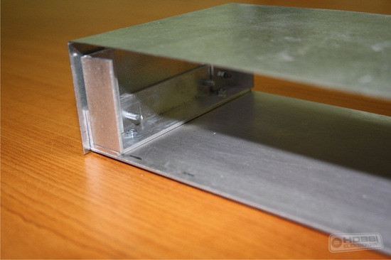Eddig azért nem írtam az előlapokról, mert én is ebben a sorrendben csináltam, no meg ha valamennyi hiba százalék becsúszik, akkor is passzoljon az előlap. Mégpedig úgy, hogy már a megvalósított fedlappal, vázzal együtt összeszerelve mértem meg, hogy pontosan milyen méretű előlapokra van szükség. Ha már megvannak a méretek, kivágtam, kész méretre pontosítottam, majd a helyére illesztettem, hogy lássam, passzol e mindenhol. Az előlapon bejelöltem a felfogató csavarok helyét, majd kifúrtam és a fúrt lyukakon keresztül átjelölést csináltam az idomokra. Miután az előlap tartó idomokon is kifúrtam a furatokat, felszereltem az előlapokat. Itt nem szükséges menetet fúrni, mivel a fedlap eltávolításával kényelmesen szerelhető az előlap csavarral, anyával. Egyedül a fedlap felszereléséhez fúrtam M4-es menetet az L idomokba.