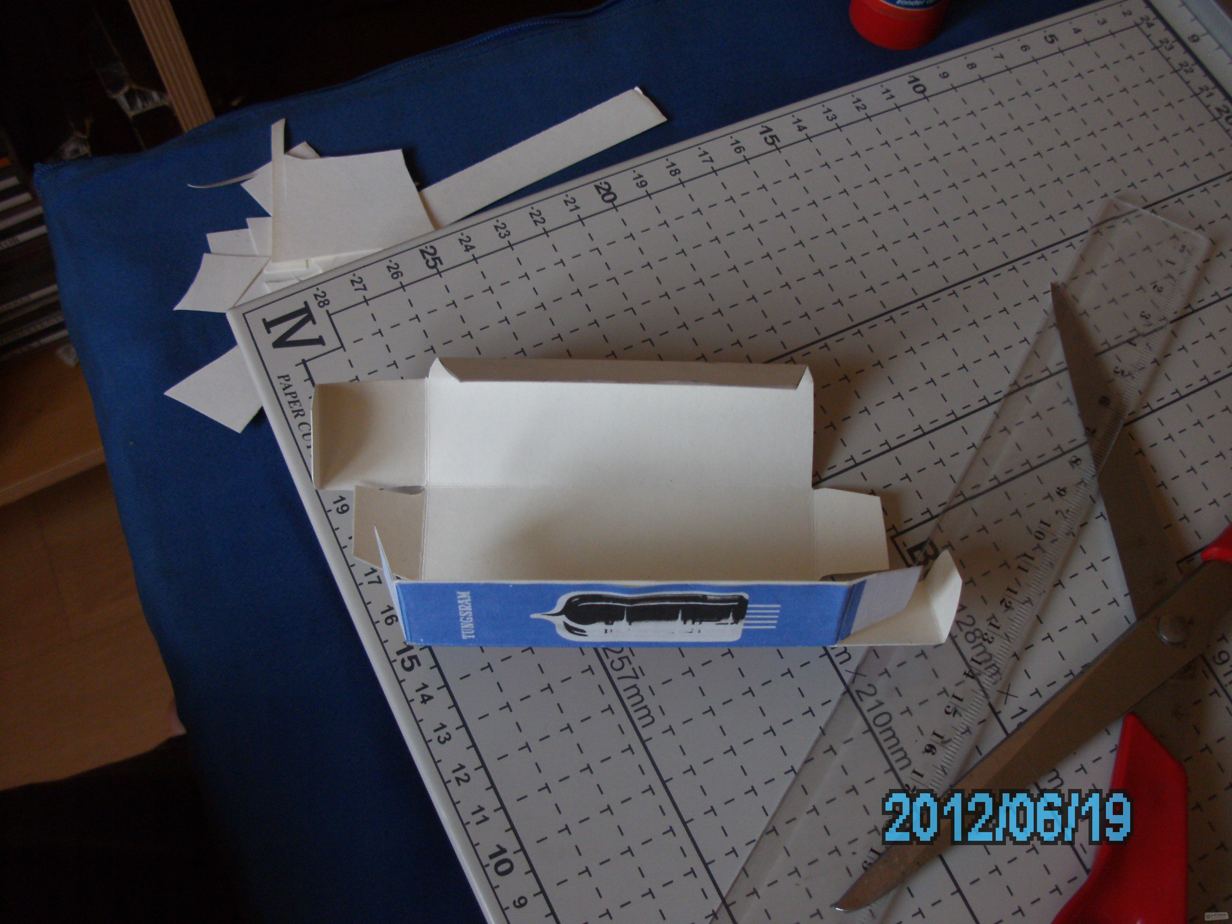 Most, hogy készen van a keménypapír dobozunk, de lapos mint az Alföld, fogjunk egy ollót és egy vonalzót. A vonalzó mentén finoman karcoljuk be a belső éleket, ami a doboz sarkait fogja alkotni. Nagyon fontos, hogy ne a "rajzos" oldalt karcoljuk, mert akkor a vékony papírt könnyen tönkretehetjük! Ne nyomjuk túl erősen, mert akkor túlságosan elvékonyítjuk a papírt, ez pedig idő előtti szakadást, eldeformálódást okozhat.