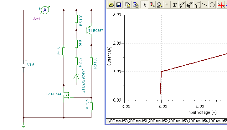 Ha jól értem, akkor az a kérdés, hogy akkupakk kisütésére is lehetne alkalmazni.. Természetesen lehet, csak akkor éppen a lényegi dolgok megkérdőjeleződnek. Tekintve, hogy ez a kis kapcsolás, alapvetően egy cellára készült (mint ahogy a topik is), ott pont a kis feszültség miatt - és hogy ne legyen szükség segédtápfeszültségre- célszerű így megvalósítani az áramkört. Soros cellák feszültség alapú kisütése, pedig már nem, ilyen egyértelmű. Ott egy cella kimerülése esetén akár gond is lehet. Tehát a soros cellákat csak egy általunk elfogadható cellaszám határig értelmes kisütni. 1..2V-nál nagyobb feszültségre már lehet jobb eszközöket is alkalmazni, hiszen a tápfeszültség ezt már megengedi. De a kedvedért leszimuláltam, hogy lásd hogyan megy. Viszont ekkora áramnál, a szaturációs feszültség kis értéken tartása érdekében már érdemes Fet-et alkalmazni. Ennek van előnye és hátránya is. Pld. ha fordított polaritással helyezzük be a cellát, akkor a Fet parazita diódája kinyit, és egyből a lámpára kapcsolja a feszültséget. A szükséges feszültség eltolást, a zéner hozza létre, plusz a vele sorba kapcsolt ellenállások. Jelenleg az R4=0ohhm és a kisütő 6db cellára jó. Ha az R4-et pld. 180ohm-ra cseréljük, akkor 7 cellára lesz jó, és így tovább 180ohm-onként..(Ja, és az R1 helyettesíti az izzót..) De a pontos bemérést a kapcsolás elkészítése után el kell végezni. üdv! proli007