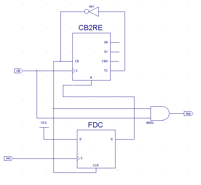 összedobtam 1 rajzot.ez mondjuk egy egyszerü cpld-vel van csinálva,de diszkrét elemekkel is meg lehet csinálni,tipust nem irok.clk-ra mehet egy olyan órajel, amilyen sebességgel ki akarod küldeni az impulzusokat (pl 1 Hz).res-re pedig az adott nyomógomb föld fele,táp fele meg egy ellenállat.