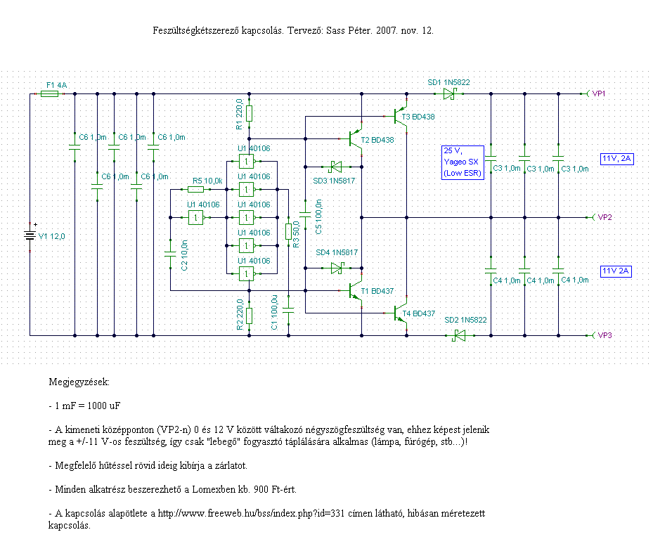 A csatolt kapcsolást én terveztem, max. 2 A-t adhat le. Még nem próbáltam ki, de ez legalább elvileg korrekt!