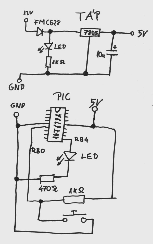 Ha kiveszem a PIC-et a foglalatból és a PIC 5V-os lábhelyét összekötöm az RB4 lábhellyel, akkor ugyancsak világít. Ebből arra következtetek, hogy a kapcsolás is jó.