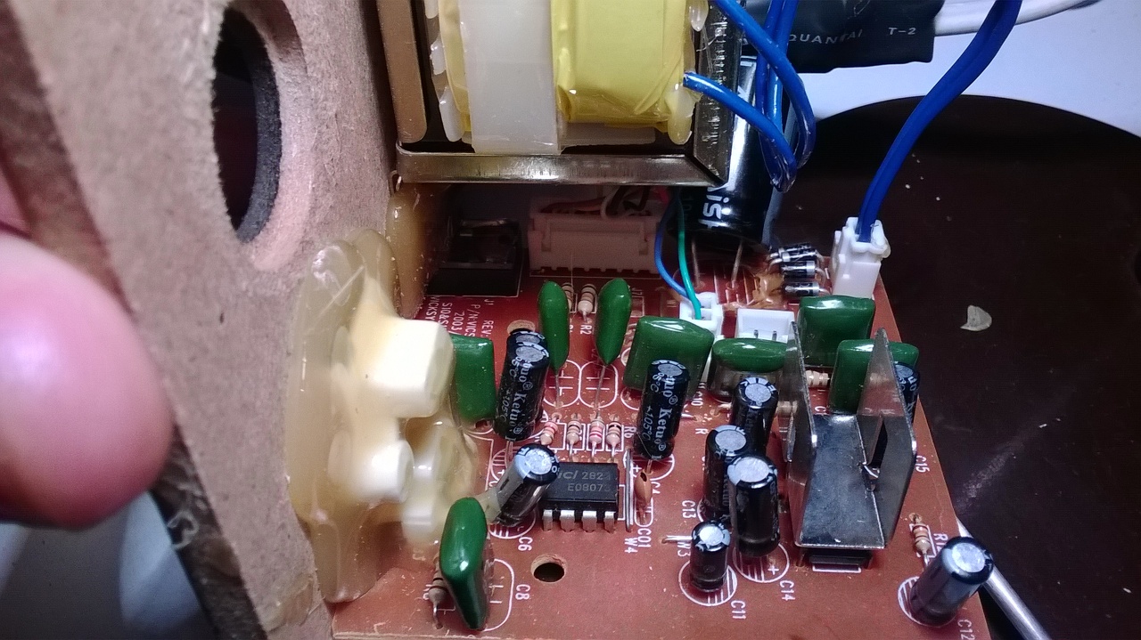 Van egy Ilyen 2.1-es hangfalam, ami nagyon búg. Szétszedtem kicseréltem egy 2200 μF kondit hátha az a baja,de nem, továbbra is búg. Ha lehúzom a hangszórót akkor nem búg, gondolom akkor nem a trafó a baja.