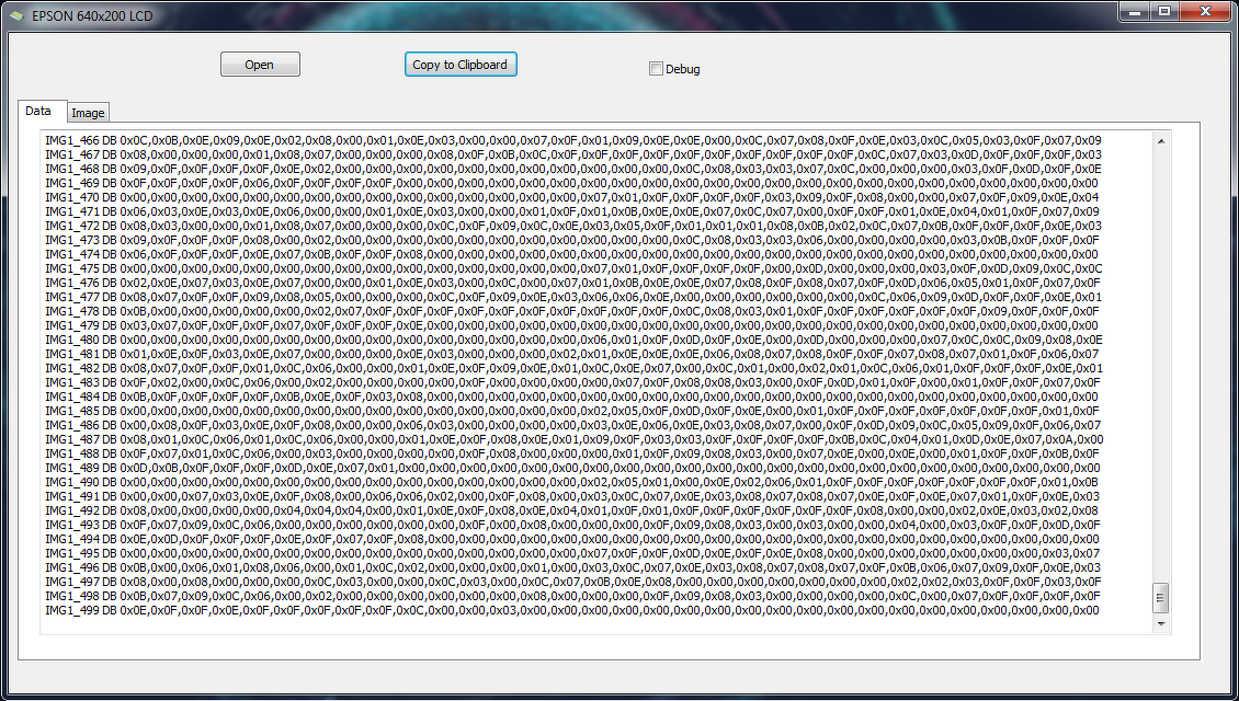 Utána PIC18F-re (18F2520, majd 18F26K22 mert ez utóbbi adatlap szerint tud menni 64MHz-en is) írtam progit (szigorúan asm). Egyelőre a PIC memóriájába van berakva a kép, amit Delphiben írt programmal gyártok le az egyszerűség kedvéért