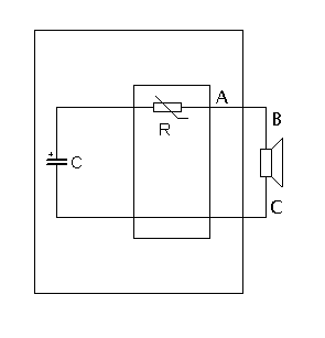 1) Ha az aramkort megbontjuk az A es B pontok kozott es e ket pont kozott vizsgaljuk a kapcsolast akkor sorosan kapcsolodik a puffer kondi es a hangszoro.