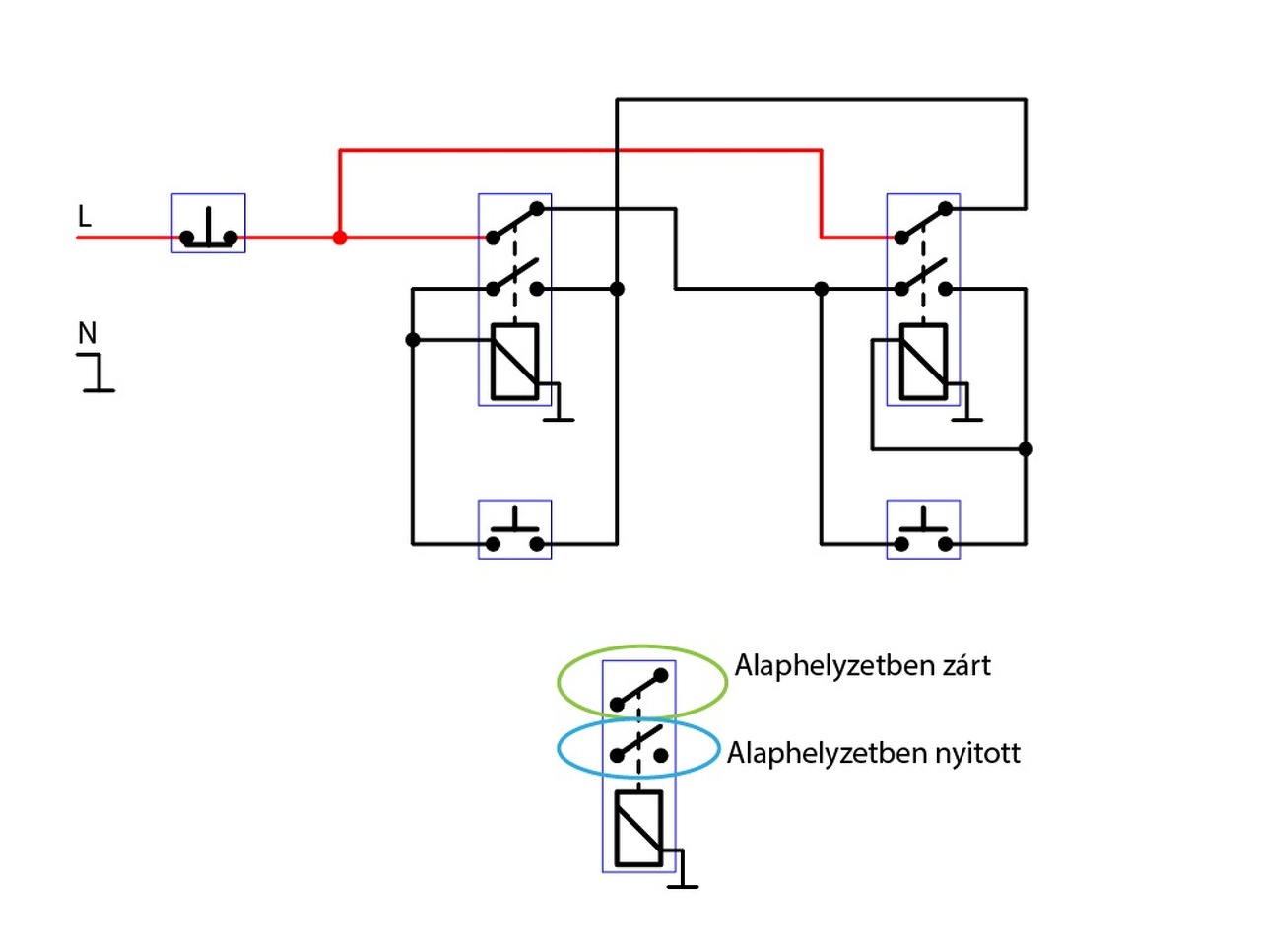 Inkább rajzoltam neked egyet. Értelemszerűen ez csak a segédérintkezőkre vonatkozik.