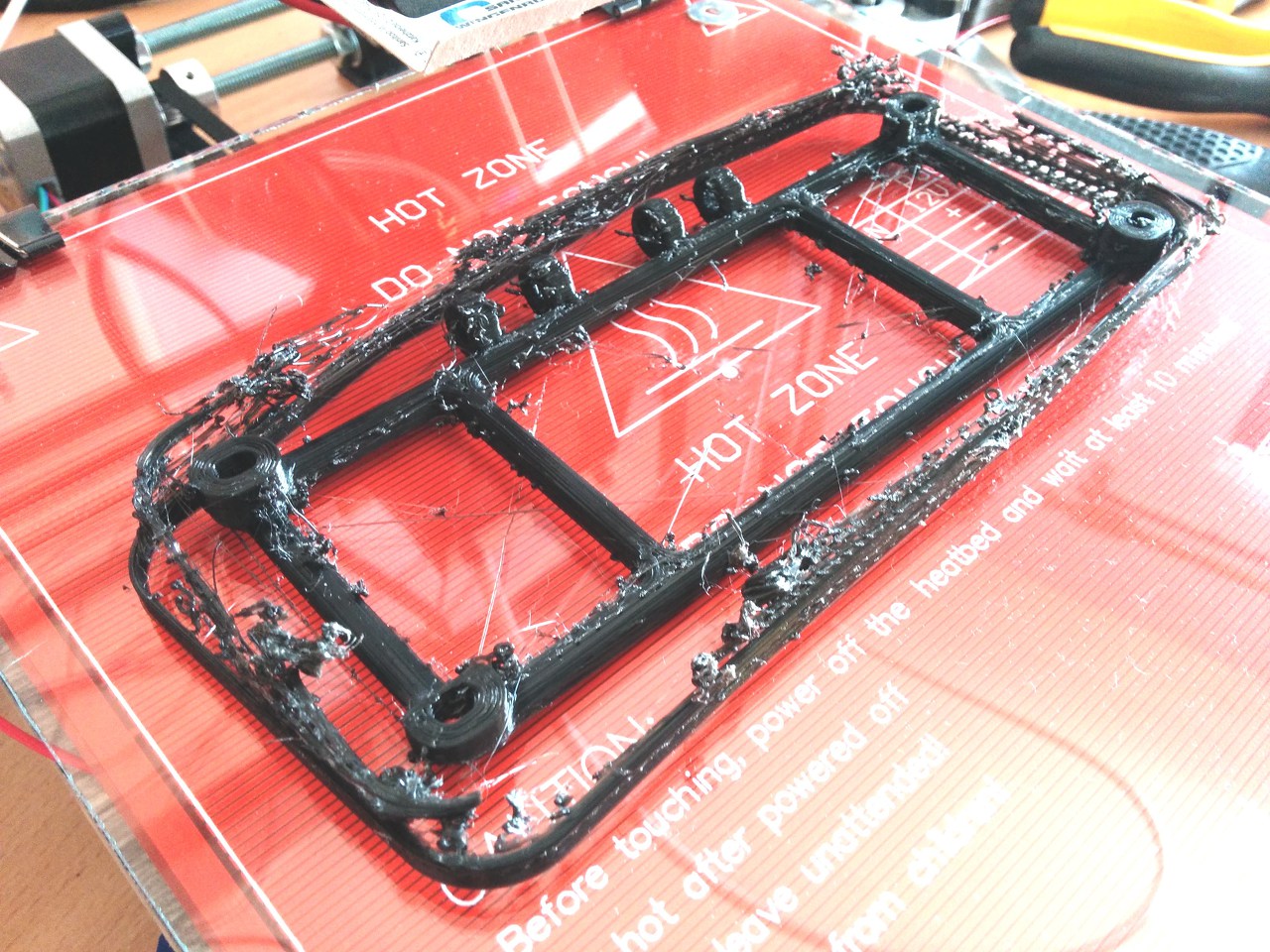 Így elveszik némi felület a 20x20cm-hez képest, de ez még nem okozott gondot, pedig nagy kiterjedésû dolgokat is nyomtatok. Herz 3mm PLA, 190 fokon, zöld/fekete/fehér is. Az elsô réteget belenyomom az üvegbe eléggé, tehát szétlapul az üvegen (szinte alig jön ki az anyag). Amikor a két kört "rajzolja" nyomat elôtt, beállítom a magasságot kézzel (menetes-szárat forgatom, ez Prusa esetén macerás lenne, de nálam csak egy tengely van). Nyomtatás elôtt közevetlen kinyomok manuálban anyagot, hogy amikor már nyomtat, biztosan jöjjön. A hozzászólás módosítva: Feb 17, 2015