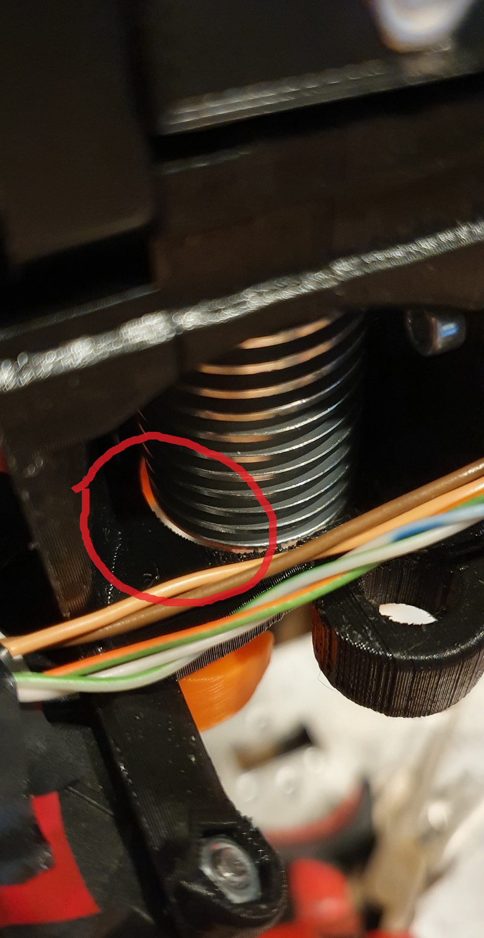 Ezt az opciót én kizárnám, mert a T8-as orsónak a menetemelkedése(lépése) 8mm, a nyomtatott darabon viszont kb minden második rétegnél látszik ami 0,4mm lenne. A nyomtatóm előző változatán ahol még fából voltak az alkatrészek és kicsit kotyogtak ott tisztán lehetett látni a hullámokat 8mm-enként, de ez megszünt mióta PETG-ből újranyomtattam mindent