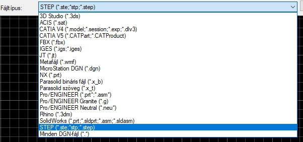 Találtam olyan importálási opciót, ami felkínálja a STEP forámtumot is, de hibával végződik.