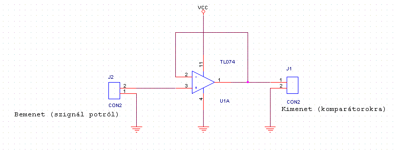 Követő erősítőnek is hívják, mert a kimenetén ugyanaz a fesz van, mint a bemenetén.