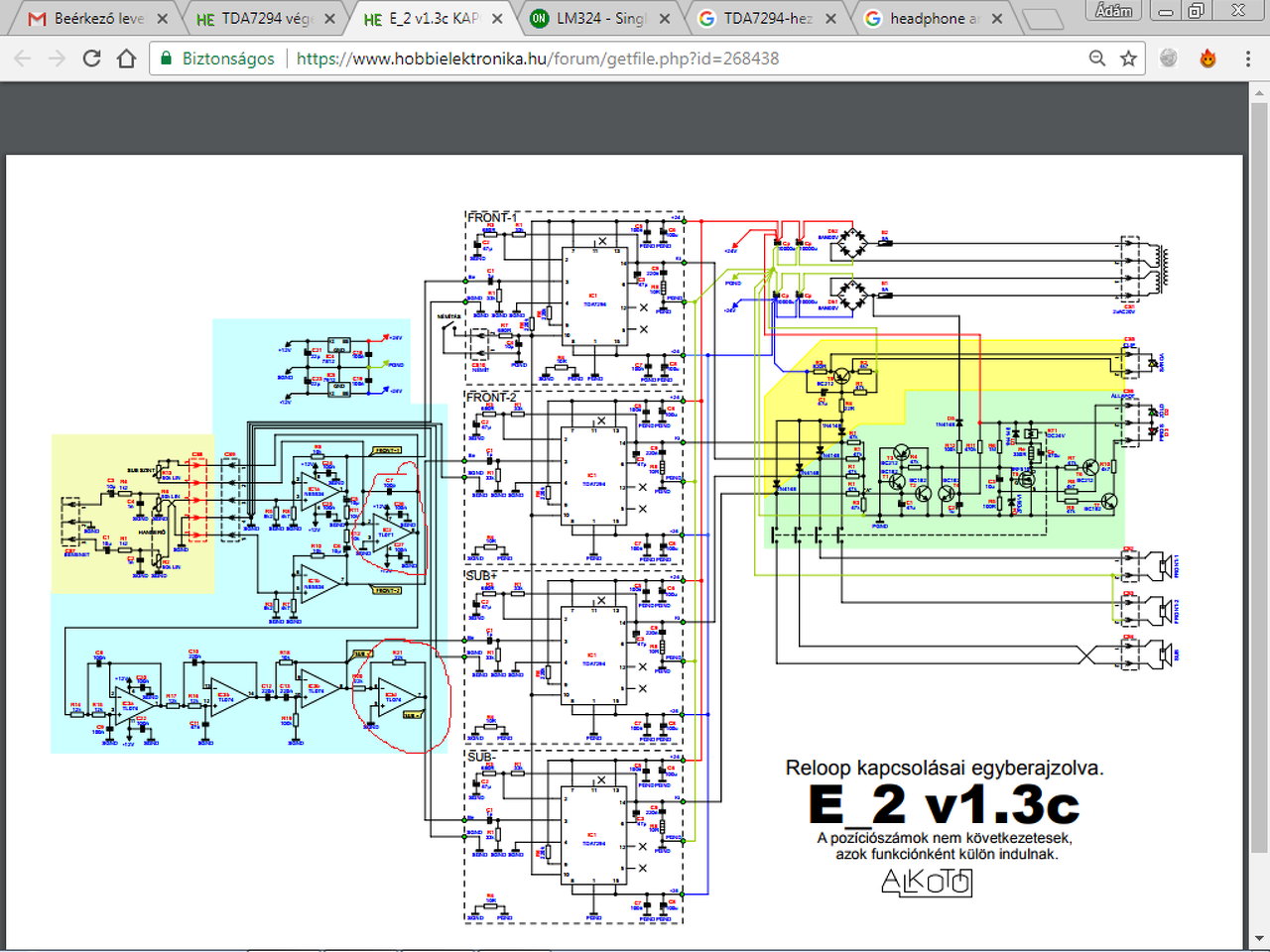 Egy TDA7294 erősítőt kellene javítanom, miután a gyári állapotában "felrobbant" az IC. IC csere és a leszakadó vezetőszál átkötése után negatív táp ül ki a kimenetre. +-15V feszültséggel próbáltam 400mA áramkorláttal indítani. Élesztés után hangszóró nélkül -15V van a kimeneten. Ha rákötöm a hangszórót, akkor -30V jelenik meg a hangszórón, és a negatív tápágban letilt az áramkorlát. Az a problémám, hogy soha nem csináltam ilyen erősítőt, és rajzom sincs a kapcsoláshoz. Tud valaki esetleg segíteni? Érdemes ezzel foglalkoznom? Üdv.: Ádám