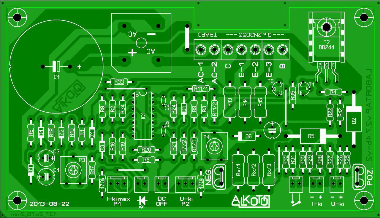 Sziasztok ,Meg szeretném épiteni az alább láthato Alkoto 2.7.4.b-v2 tápegységet de nem találok vasaláshoz alkalmas nyáktervet hozzá ha valakinek megvan legyen szives segitsen ki vele .Elöre is köszönöm a joszándékot üdv dddemeter.
