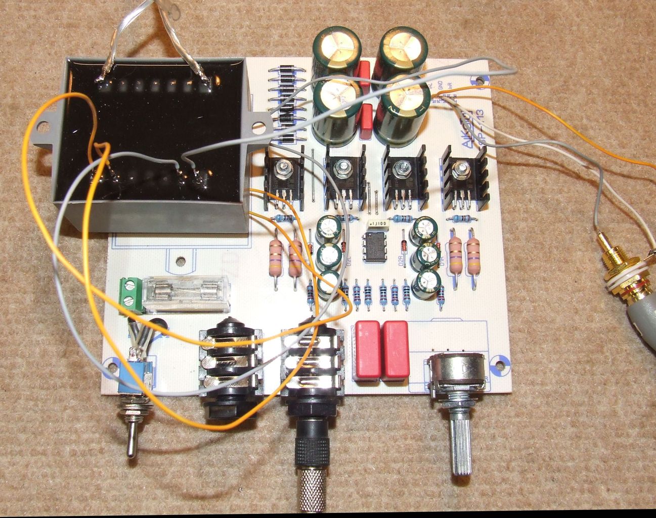 A fejhallgatóban nagyon nehéz a minimális zúgást meghallani, ezért valamilyen módon összehasonlítást kellett keresnem. A kondik kb. 5 másodpercig még táplálják az erősítőt, ezért a trafó ki-be kapcsolgatása vezetett eredményre. Ezzel a módszerrel egy minimális zúgást tudtam felfedezni. Rákötöttem ezután egy nagy hagnszórót, és annak mélysugárzójába belebújva is felfedeztem a zúgást. Kivettem a trafót, és bedrótoztam, amivel elértem annak mozgathatóságát. Fotók a teszt számával jelölve. 1. Ha kb. 1cm-el kifelé elmozdítom a trafót, már az érzékelésem határára csökken a hatás. 2. Ha a panel mellé teszem, akkor semmiképpen sem tudom megkülönböztetni a ki-be kapcsolt állapotot. 3. Végül kipróbáltam a saját helyén 90°-al elfordítani a trafót, ami szintén nullára csökkentette az érzékelhető zúgást. Ez meg is lepett egy kicsit, de akárhogyan is füleltem a mélysugárzó membránjára hajolva, nem tudtam meghallani mikor van be, és mikor ki-kapcsolva a trafó. Tehát eredeti formájában a trafó zavaró hatása érzékelhető, de akár elmozdítva, akár elfordítva az érzékelhetőség szintje alá lehet szorítani a búgást. A hozzászólás módosítva: Ápr 5, 2013