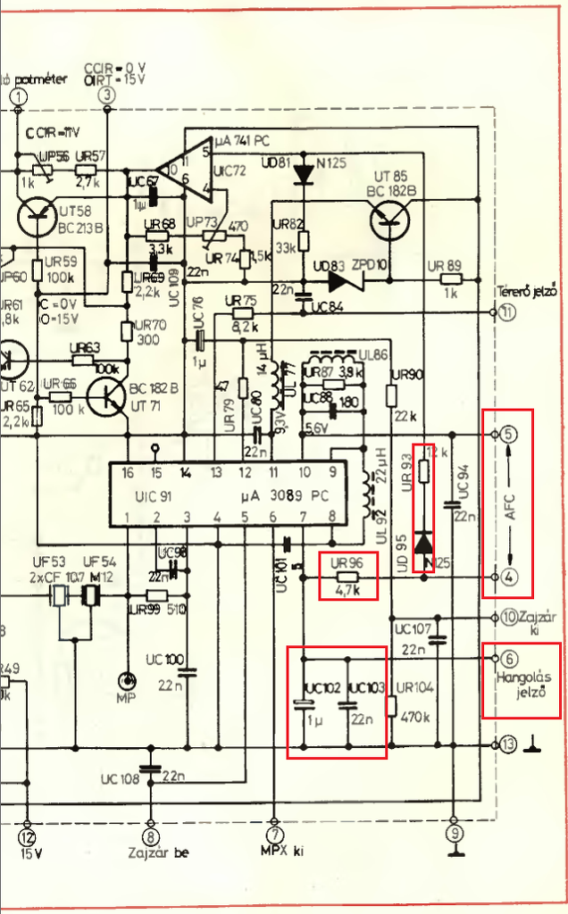 Azt lenne jó még tudni, hogy vajon ezt a hibát maga az AFC kör okozza-e, vagy esetleg (Pl egy kiszáradt elkó miatt) a hangolófeszültség lassú beállása? A műveleti erősítő nem invertáló (+) bemenetére vezették hőkompenzáló tagokon keresztül (UD95, UR93, UD81, UR82) a Középfrekvenciás (KF) erősítőből kijövő referencia feszültséget. Elméletileg ez az AFC kapcsoló zárásakor nem nagyon változtatja az értékét, viszont az AFC kapcsoló nyitásakor tartalmazni fogja az AFC hibajelét is, ami a komparátor kimenetén a hangolófeszültséggel együtt felerősítve fog megjelenni, ami a gépkönyv szerint +11V. (Nem, nem vagyok okos, a gépkönyvből írtam ki ezeket! ) Tehát elméletileg lehet, hogy a hangolófeszültséged áll be lassan. Én első sorban UC67-re tippelnék. Érdemes műszerrel mérni, hogy mi a helyzet azzal a hangoló feszültséggel az 1-es csatlakozási ponton GND-hez képest.Szerk: Most olvasom, hogy a szignál is lassan megy fel. Az AFC kapcsoló arra a lábra csatlakozik egy 4,7K-s ellenálláson keresztül, ahova a hangolásjelző műszer. Ott is van 1 1µF-os kondenzátor illetve 22nF-os hidegítő UC102 és UC103 névre hallgatnak az uA3089 IC 7-es lábán. Szerintem Ő lesz a ludas. Szerk2: Ja! És még a referencia komparátor is ide csatlakozik a 4,7K-s ellenállás után a hőkompenzáló tagjaival együtt. A hozzászólás módosítva: Feb 12, 2014